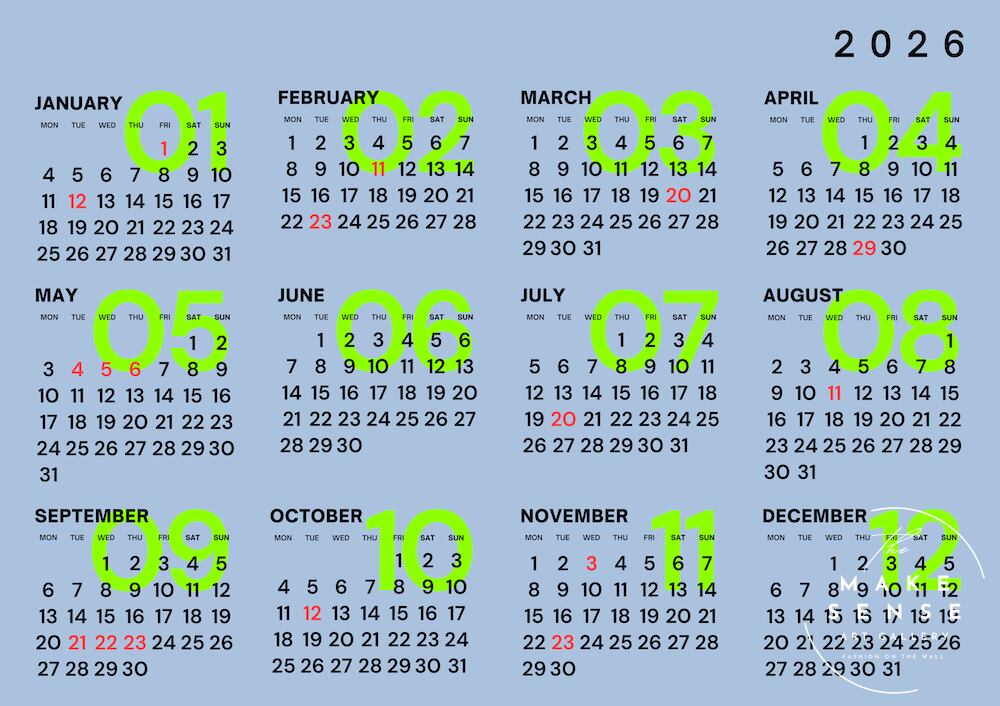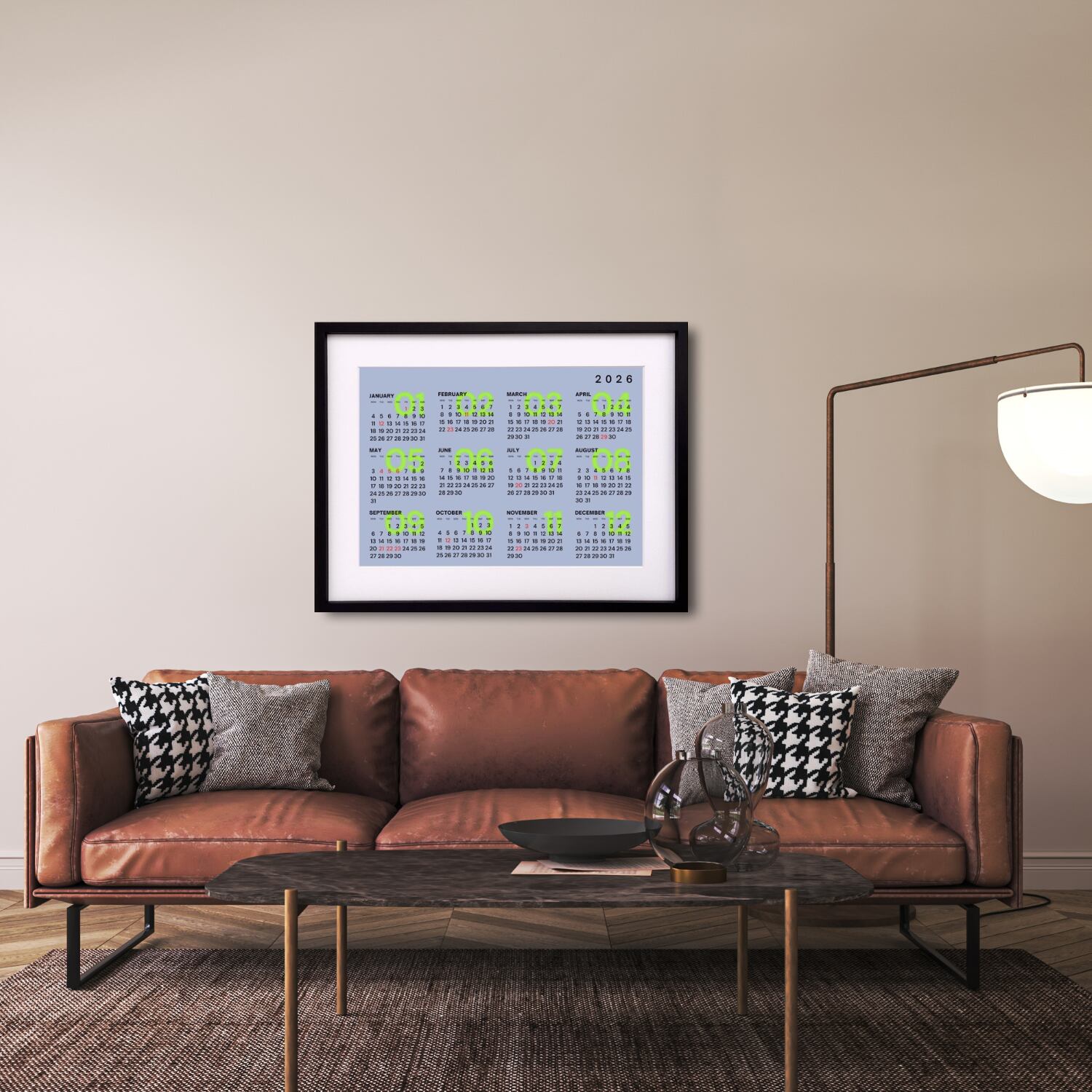 数字と余白を整えた2026年横型カレンダーポスター インテリアとしても美しい一枚