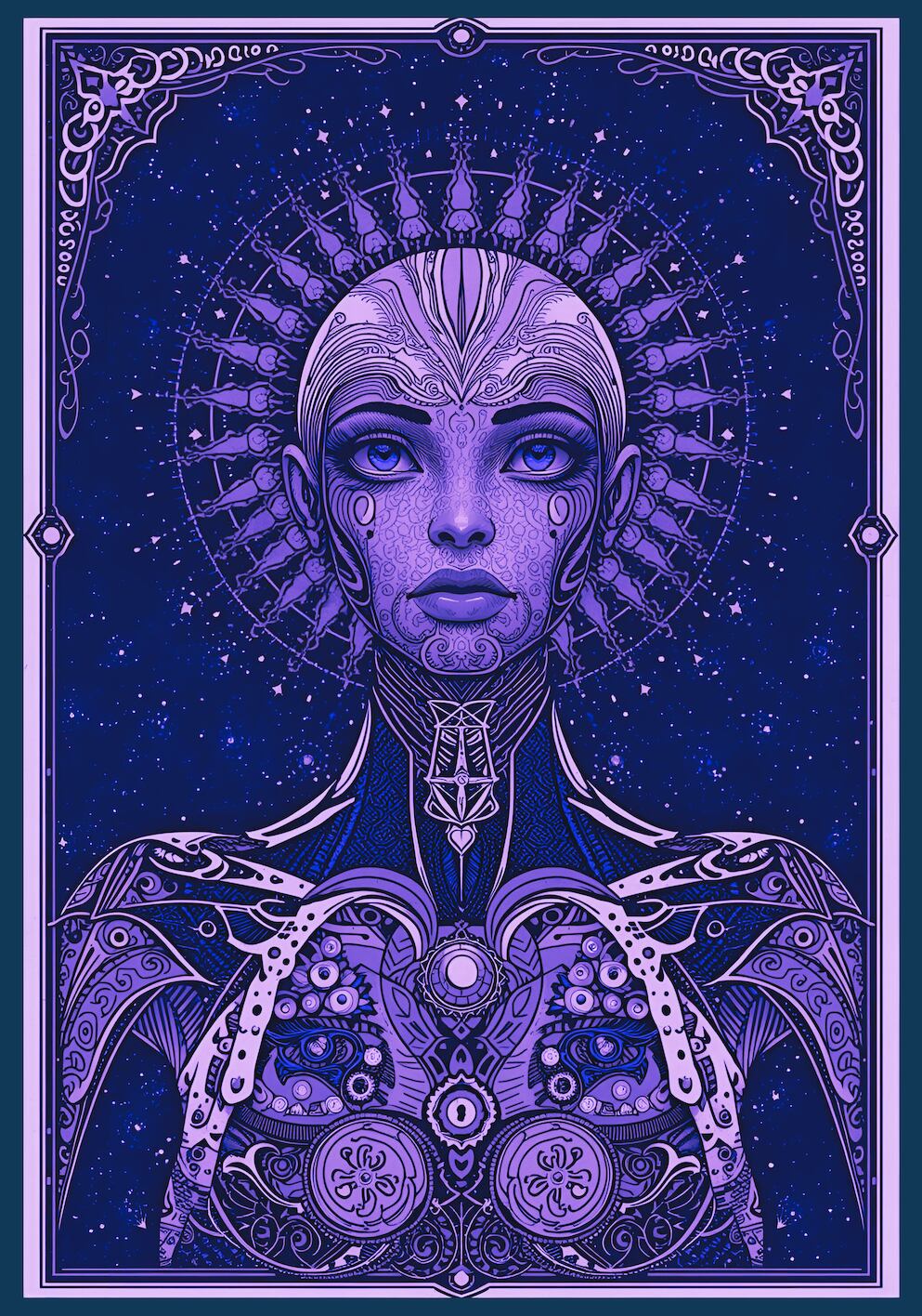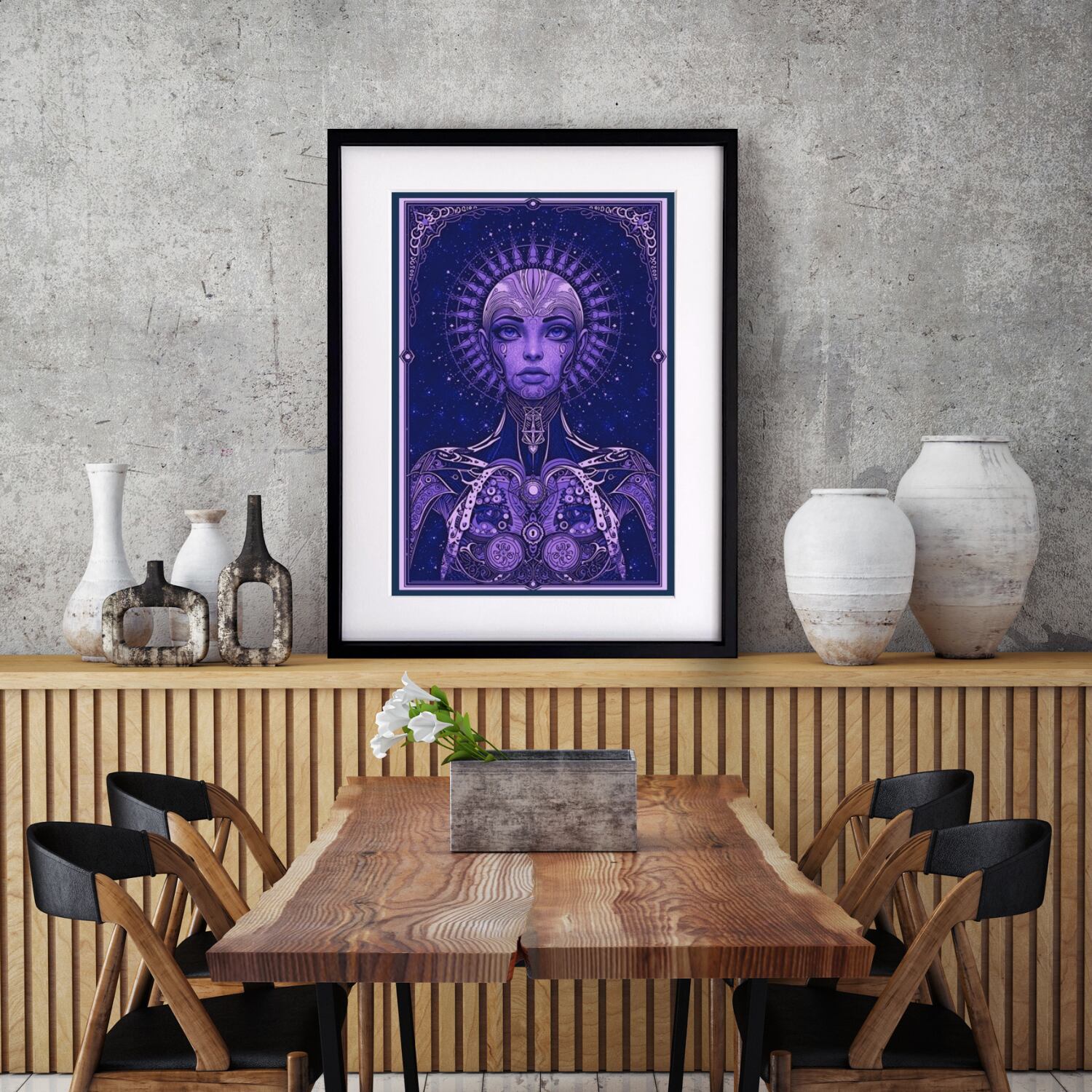 Cosmic Oracle|神秘と知性が交差する象徴的ポートレートアート|宇宙的世界観が空間を支配する一枚|A4ポスター