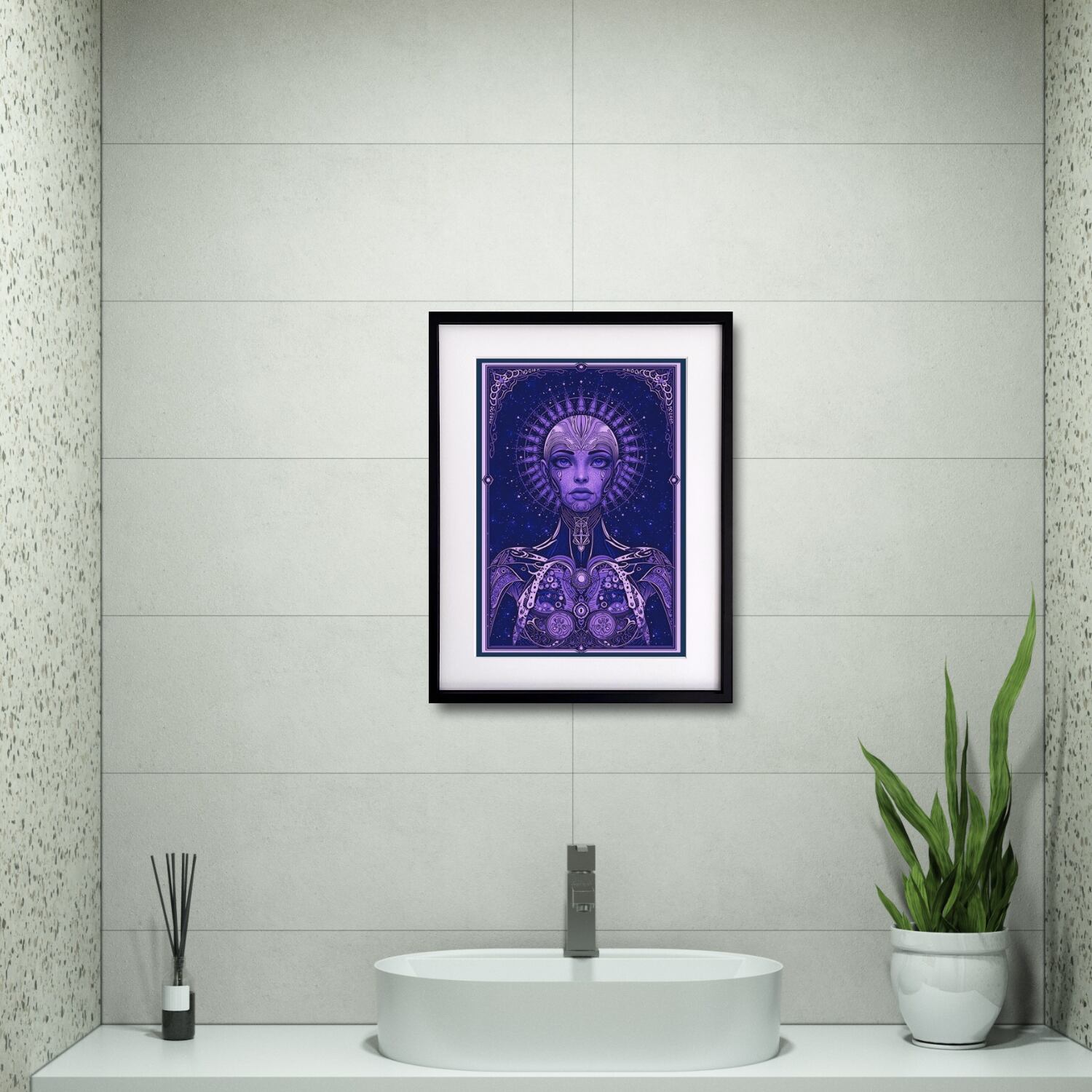 Cosmic Oracle|神秘と知性が交差する象徴的ポートレートアート|宇宙的世界観が空間を支配する一枚|