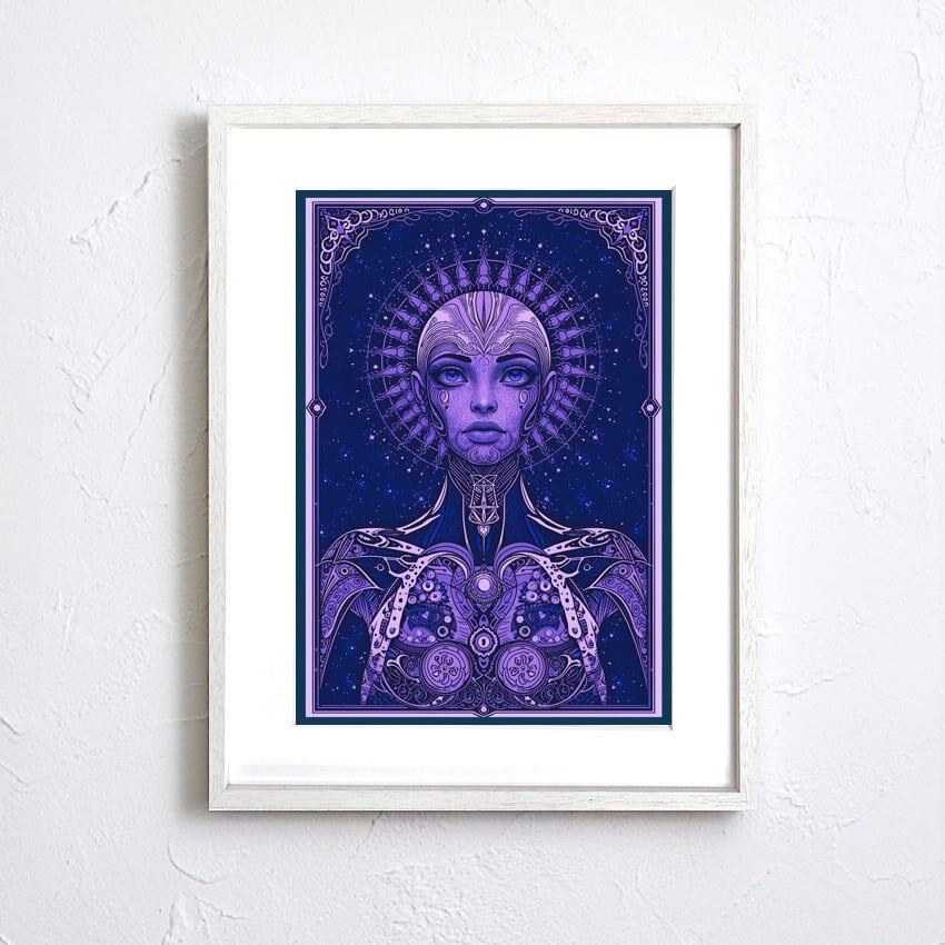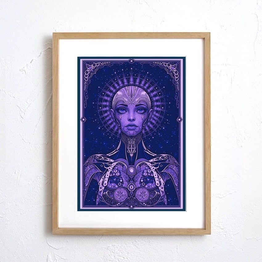 Cosmic Oracle|神秘と知性が交差する象徴的ポートレートアート|宇宙的世界観が空間を支配する一枚|A2ポスター