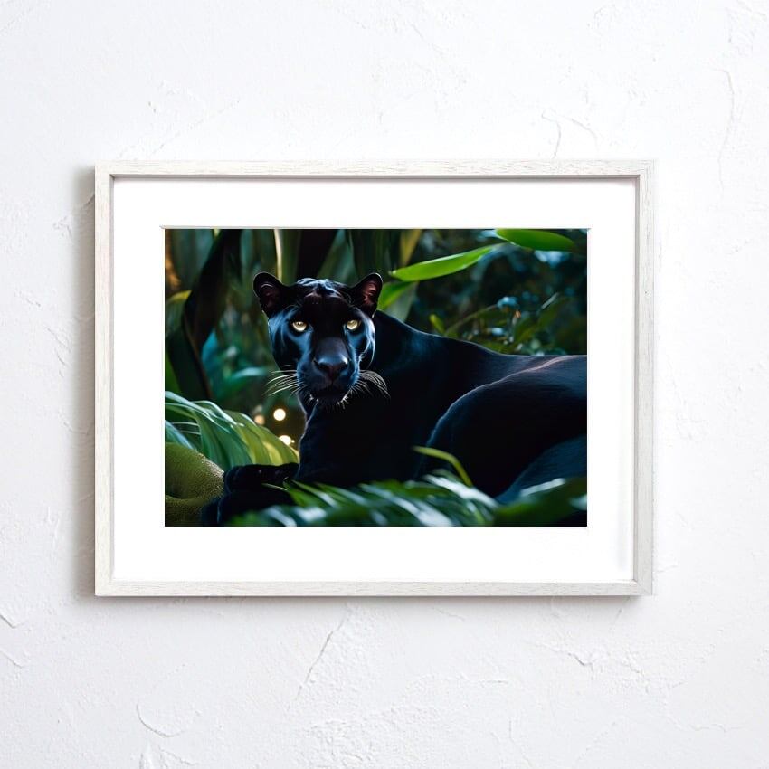 Nocturnal Panther|漆黒に潜む黒豹のフォトアートポスター|野性と静寂が共存するラグジュアリーな一枚|A3ポスター