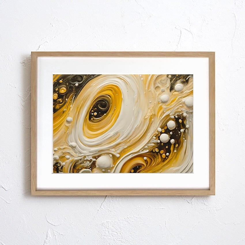 Golden Foam Flow|ビールの泡と流れを描いた抽象アートポスター|大人の晩酌空間を彩るモダンアート|A3ポスター