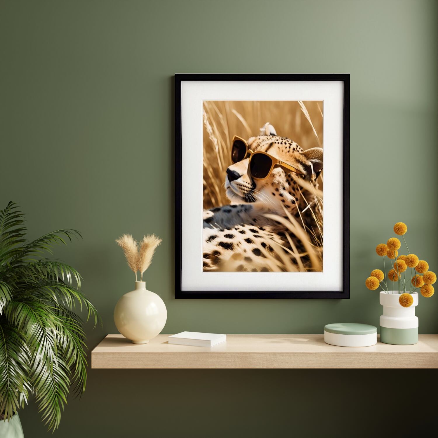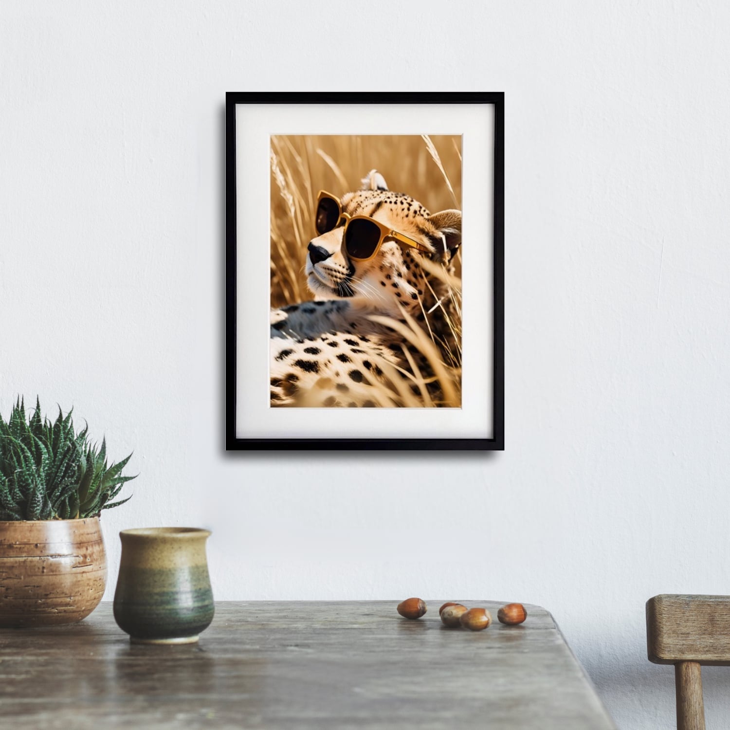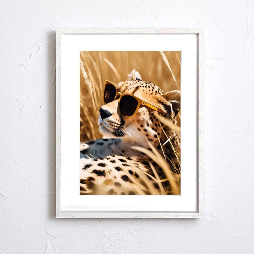 Savanna Cool|サングラスをかけたチーターのアートポスター|遊び心と高級感が共存するモダンアニマルアート|A4ポスター