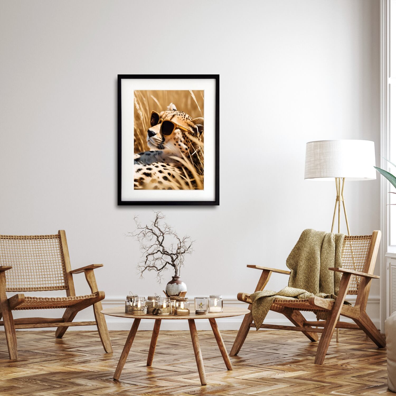Savanna Cool|サングラスをかけたチーターのアートポスター|遊び心と高級感が共存するモダンアニマルアート|A3ポスター