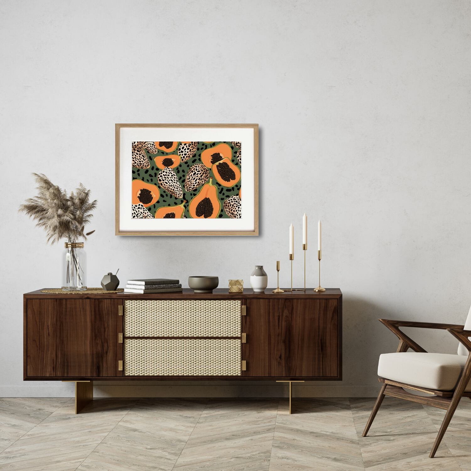 Spotted Papaya|南国パパイヤのモダンパターンアートポスター|トロピカルインテリアに映える一枚|A4ポスター