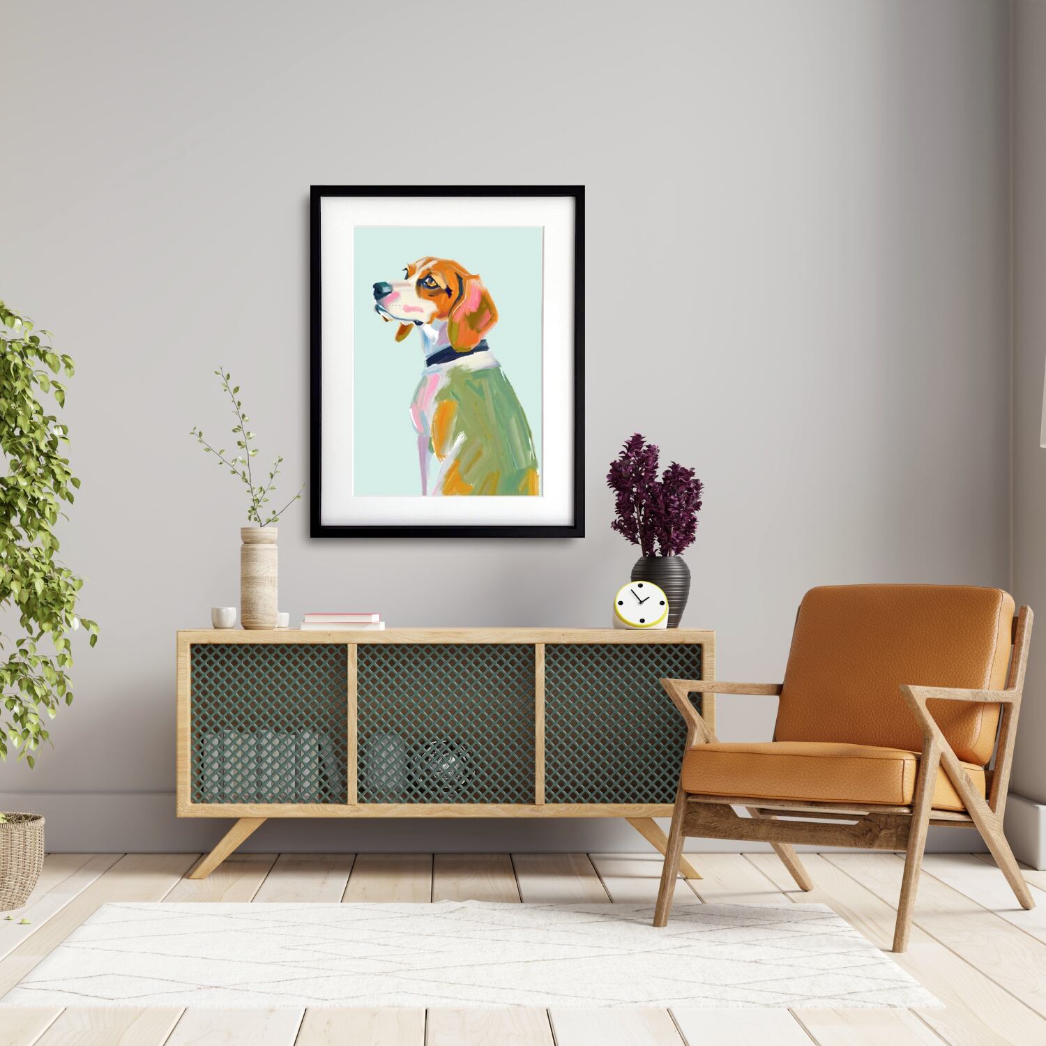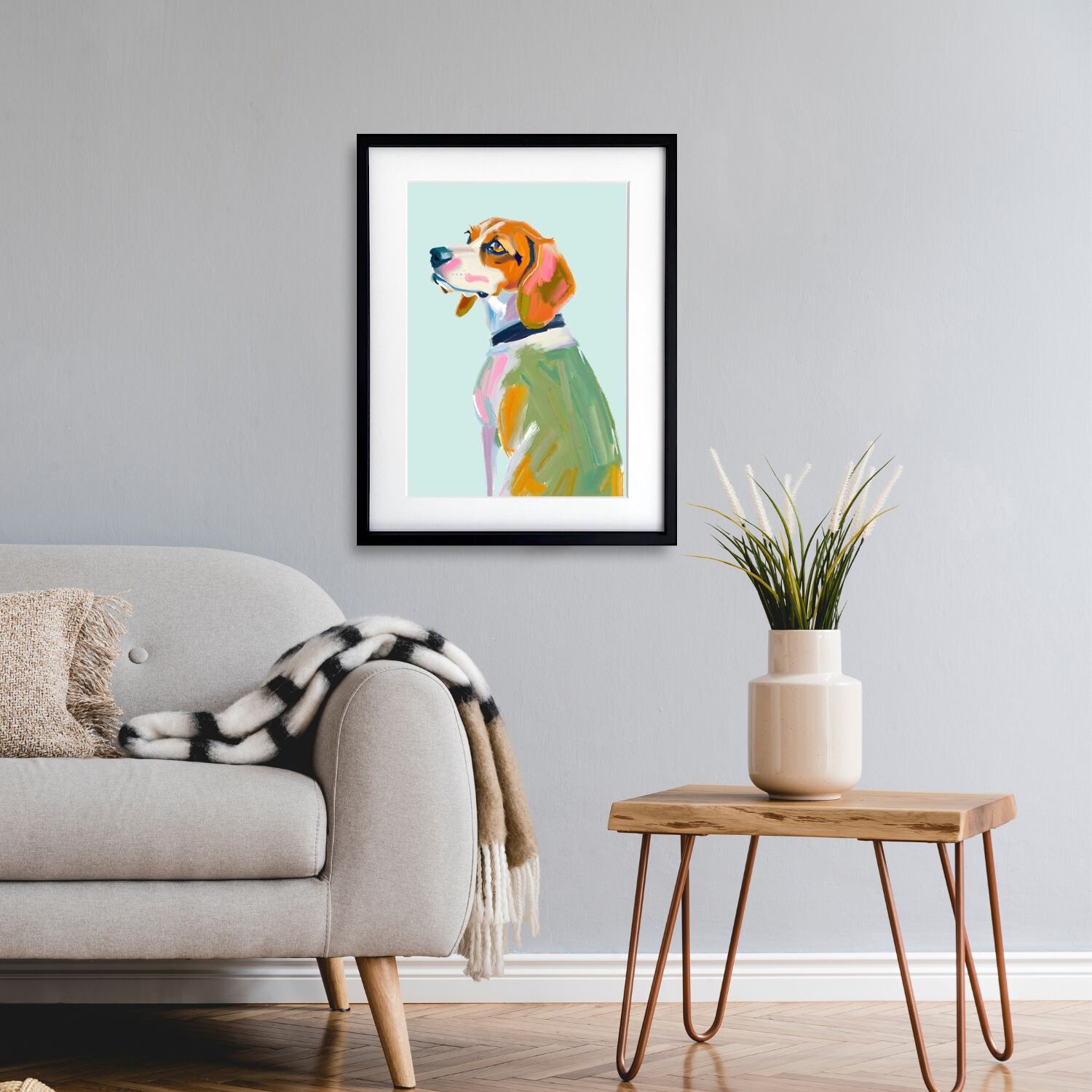 Gentle Beagle|優しい色彩で描くビーグル犬アートポスター|癒しと温もりを届ける北欧風ペットアート||A4ポスター