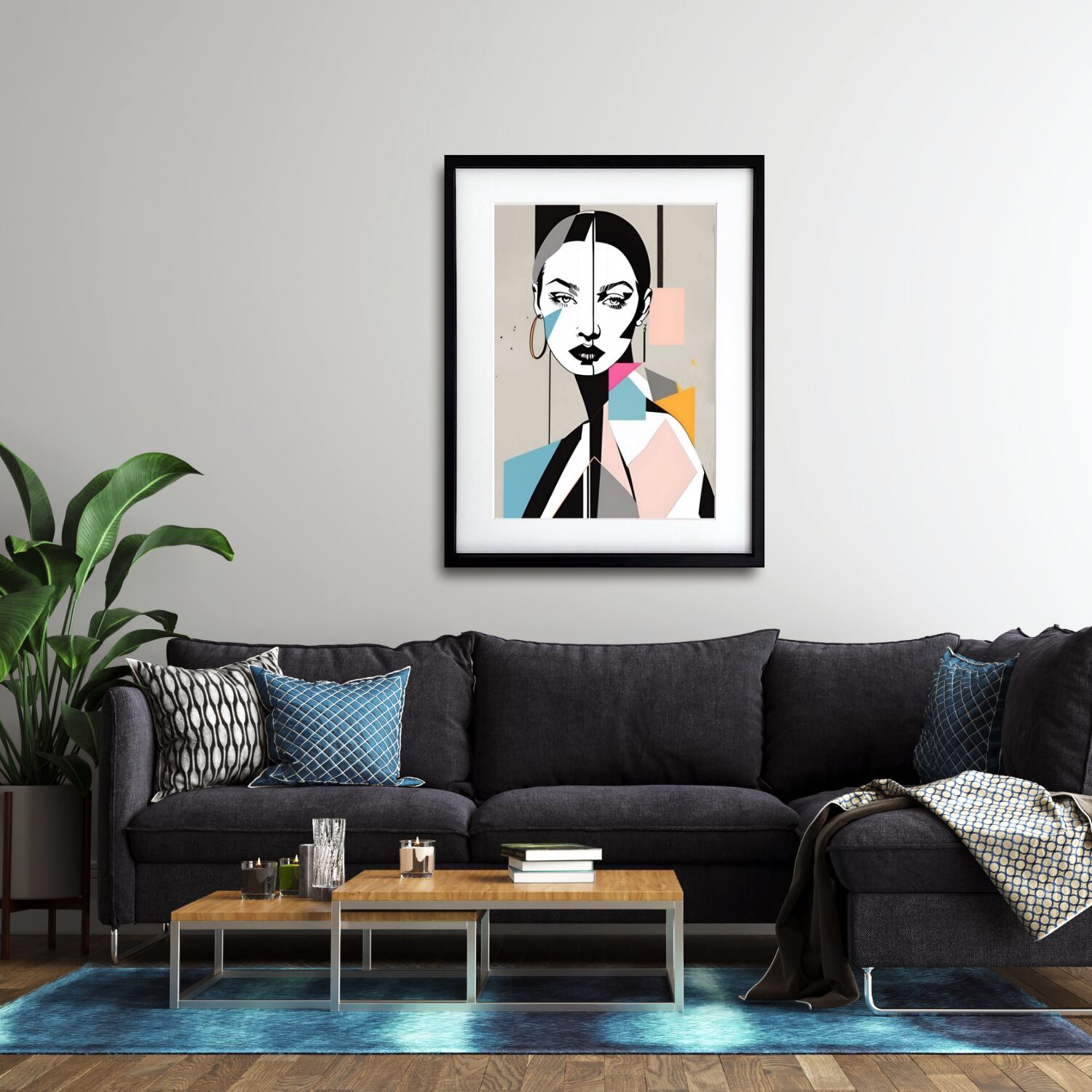 Geometric Muse|モダン×ジオメトリックの女性アートポスター|都会的でエッジィなデザインが空間を洗練||A3ポスター