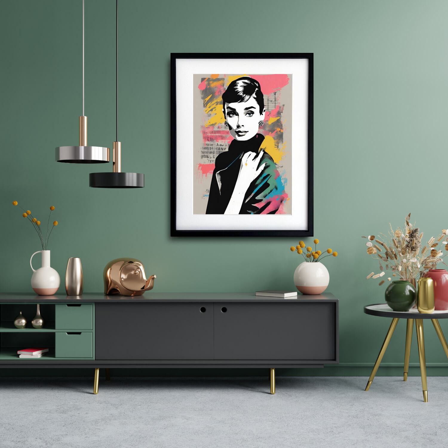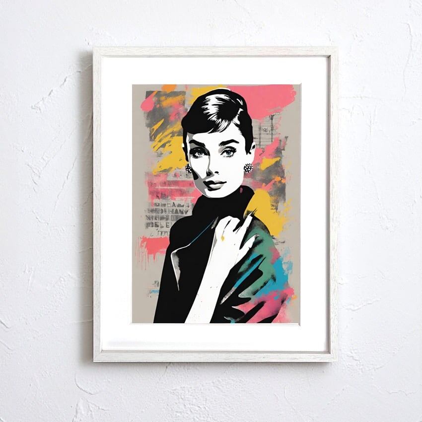 Audrey Elegance|モダン×ポップなオードリー風アートポスター|上品な存在感で空間を華やかに||A4ポスター