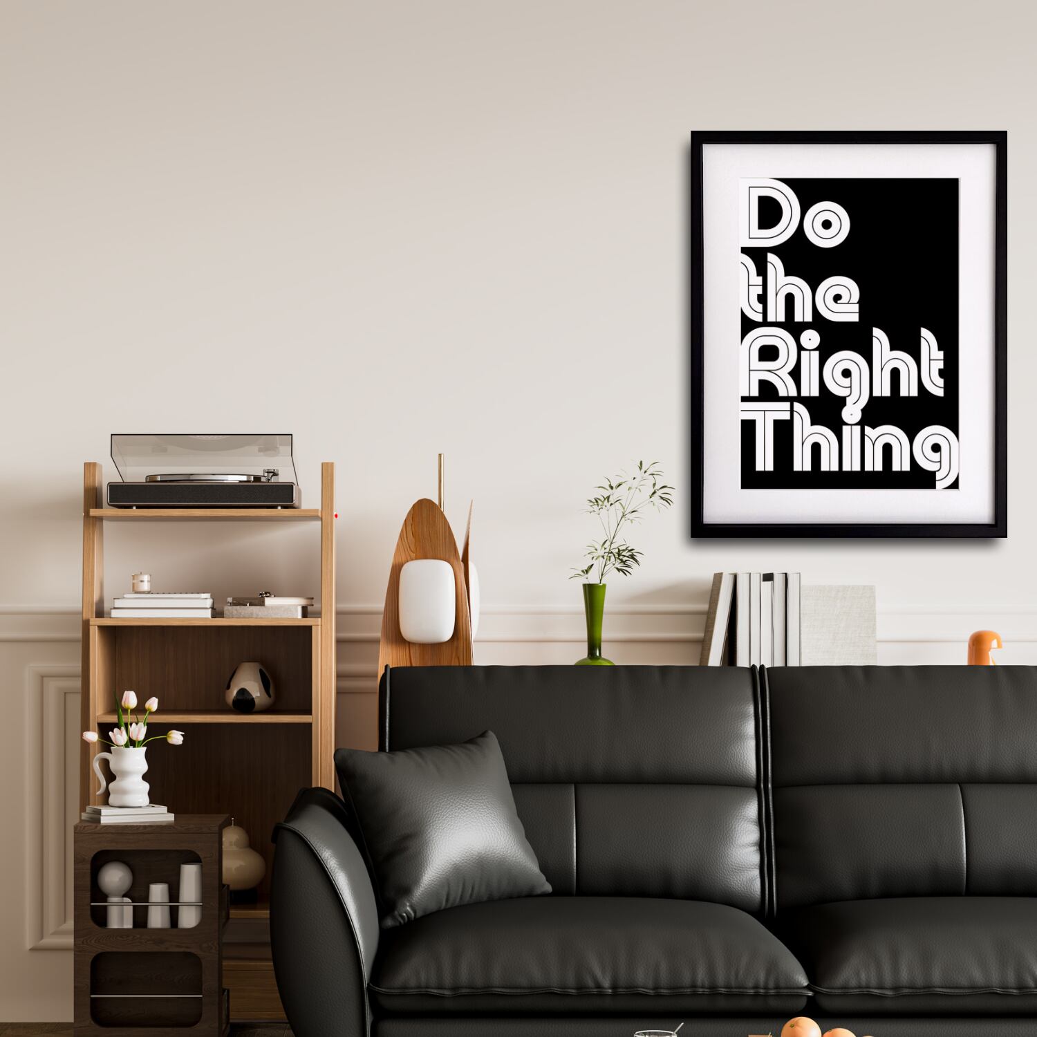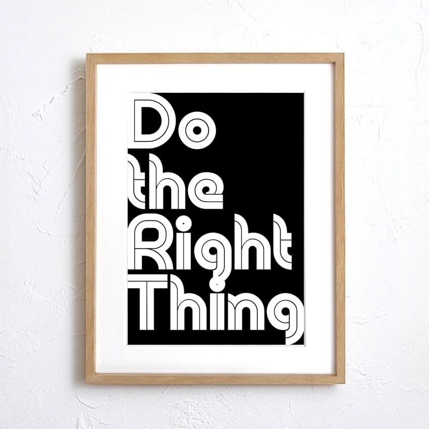 北欧テイストのモダン文字アート。「Do the Right Thing」の言葉が心を整え、毎日の選択に前向きな気持ちを与えてくれます。