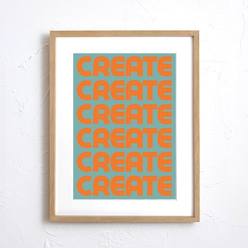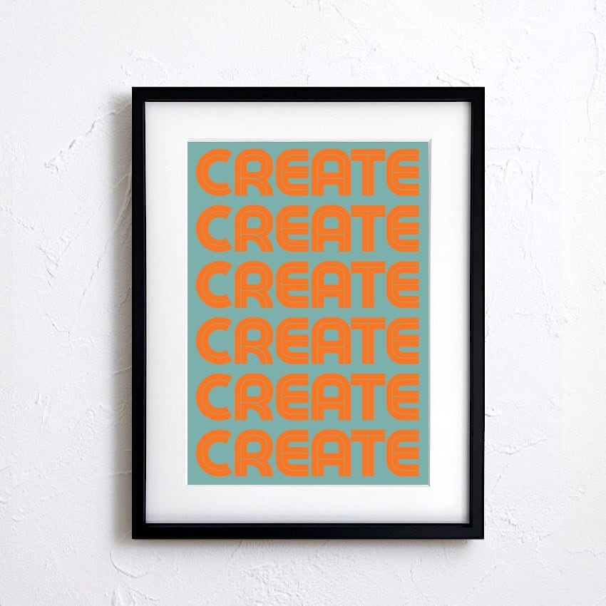 CREATE Rhythm Poster|レトロポップなタイポグラフィアート|ミント×オレンジで空間を明るく彩るインテリアA2ポスター