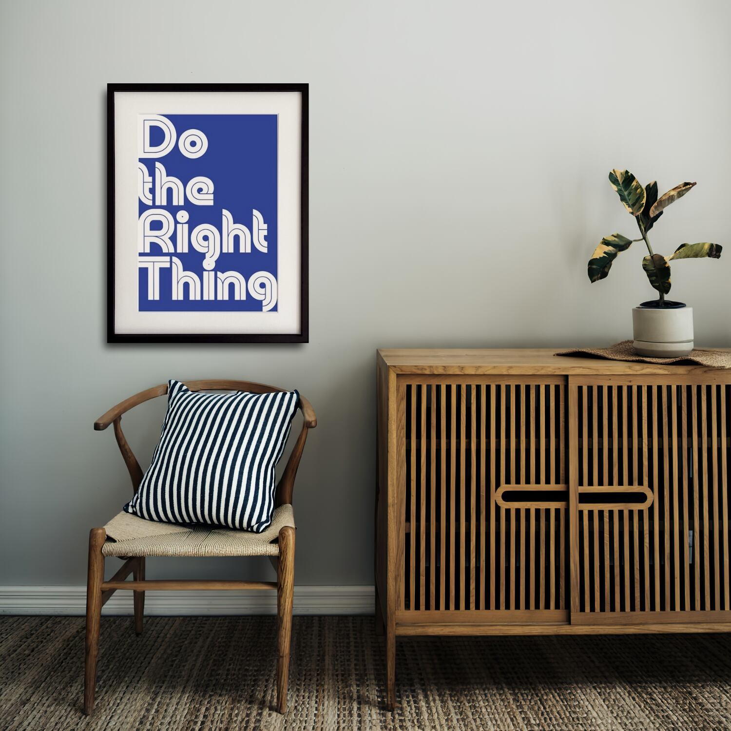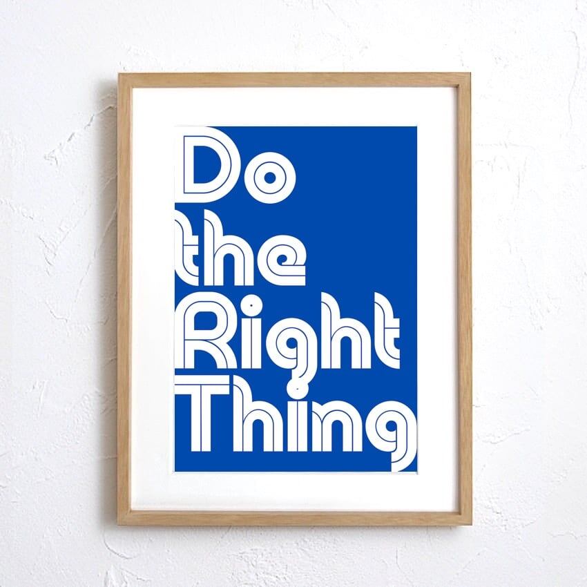 清々しいブルーに “Do the Right Thing” 「正しいことをしよう。」を大胆にレイアウトしたモダンタイポグラフィアート。