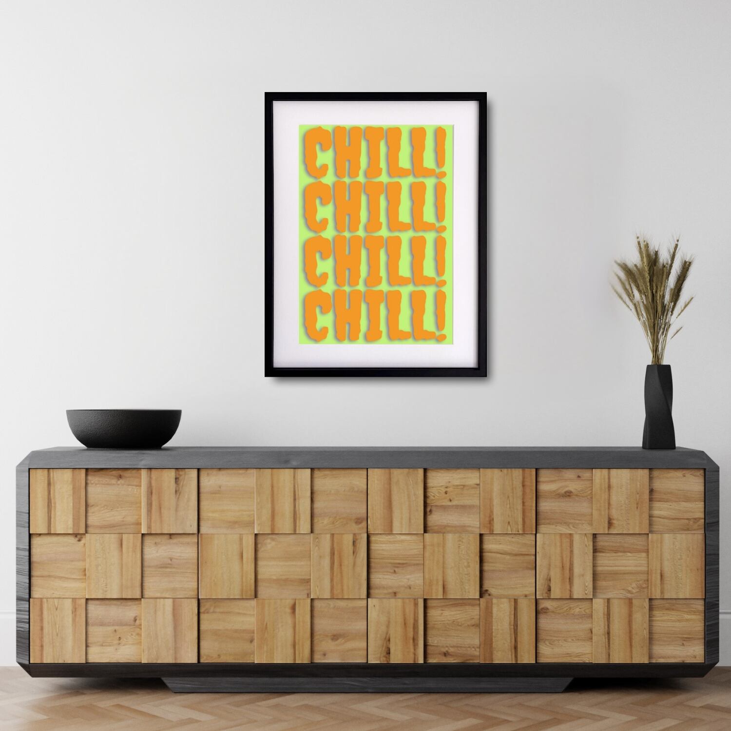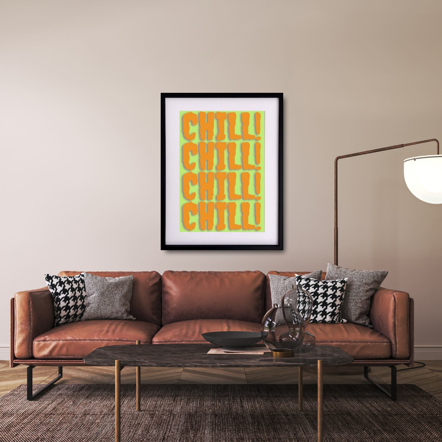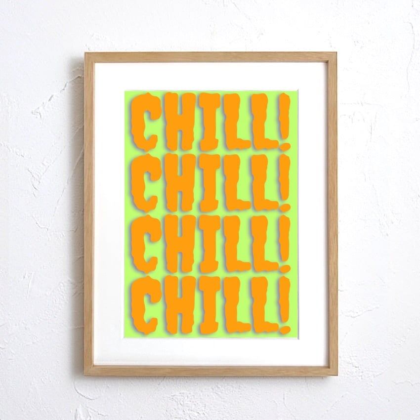 “CHILL!”の繰り返しが空間にリズムを生み、見るだけで気分が軽くなる一枚です。