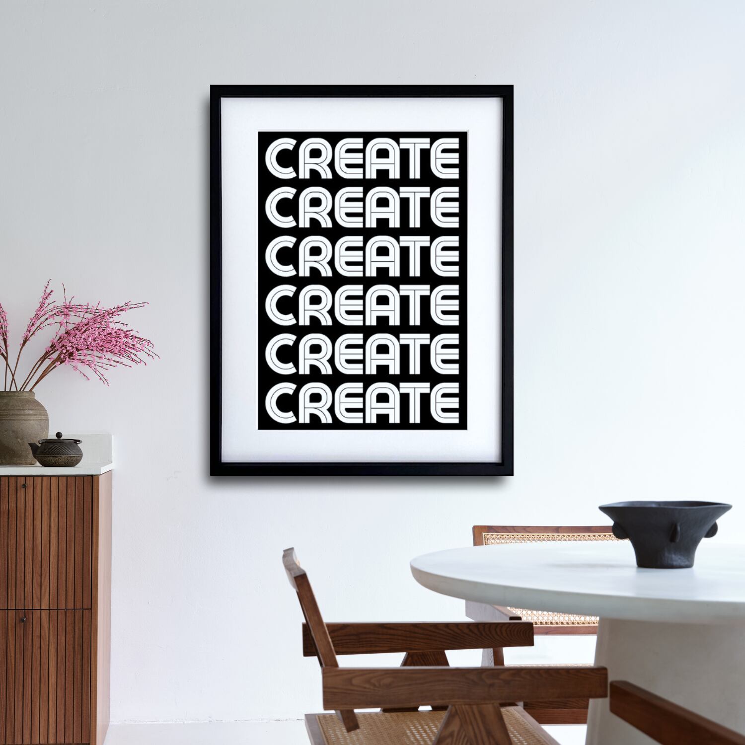 CREATE モダンタイポグラフィー|白黒 テキストアート ポスター|洗練デザイン インテリア 壁掛けA2ポスター