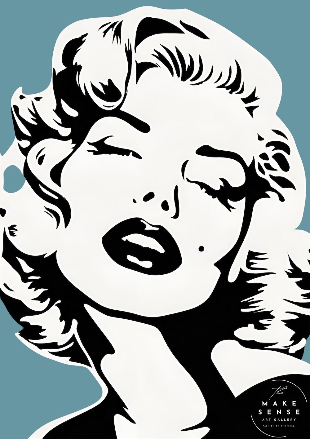 Monroe Love|ブルーグレーが映えるモダンポップアートポスター|上品で洗練された空間を彩るおしゃれインテリアA4ポスター