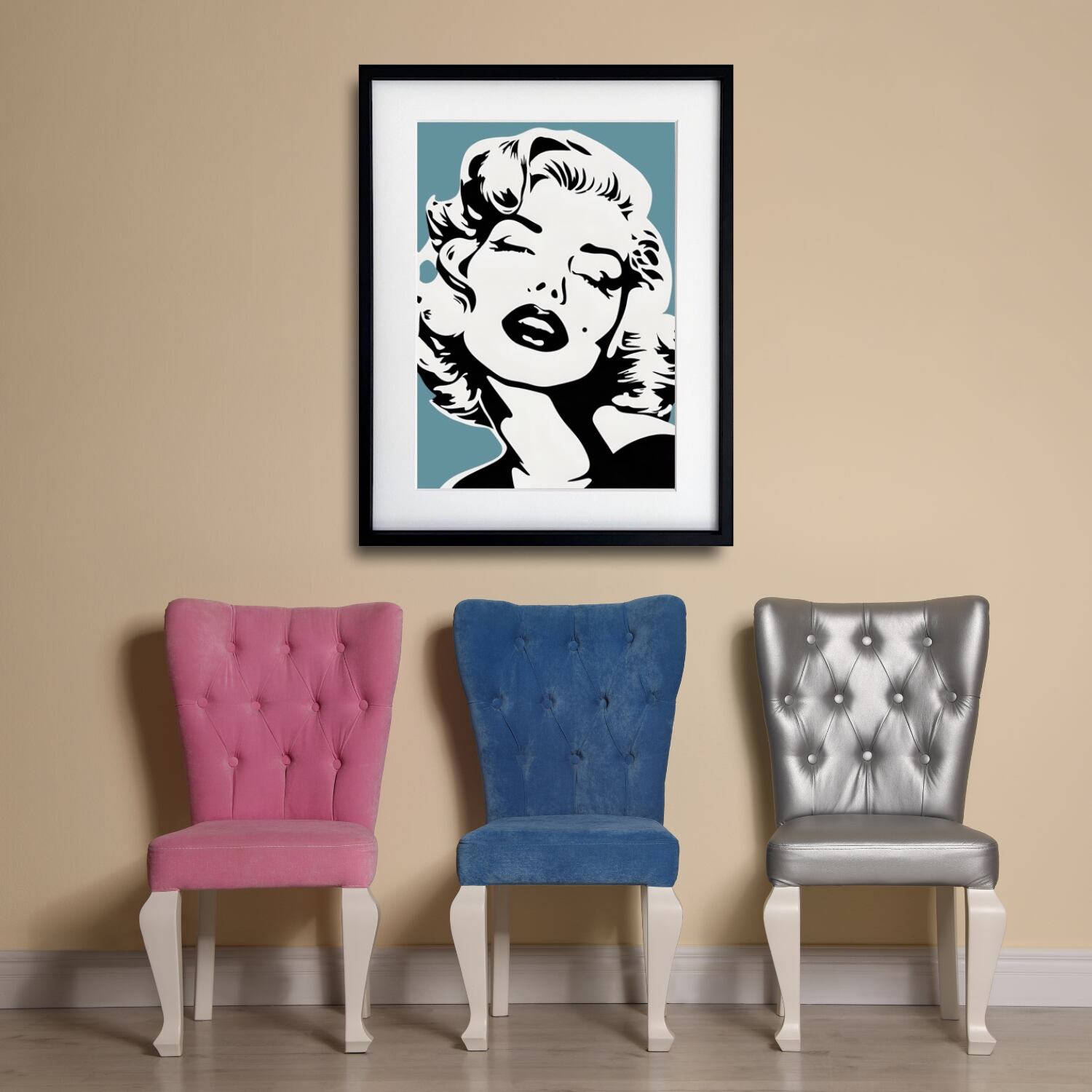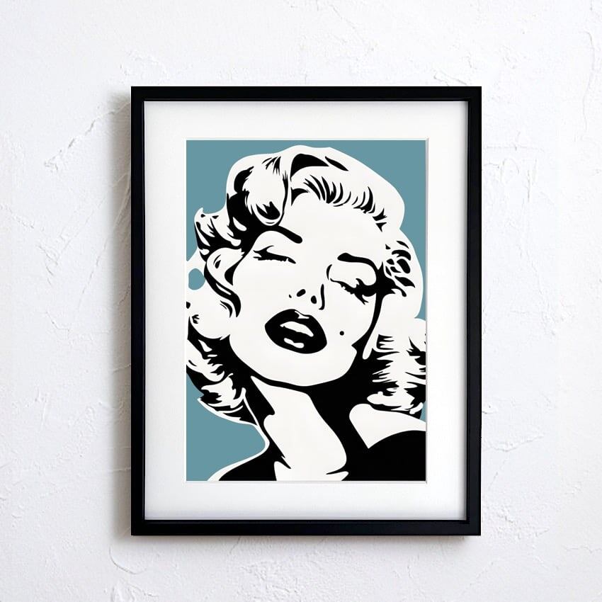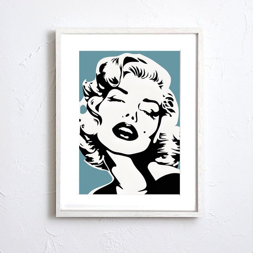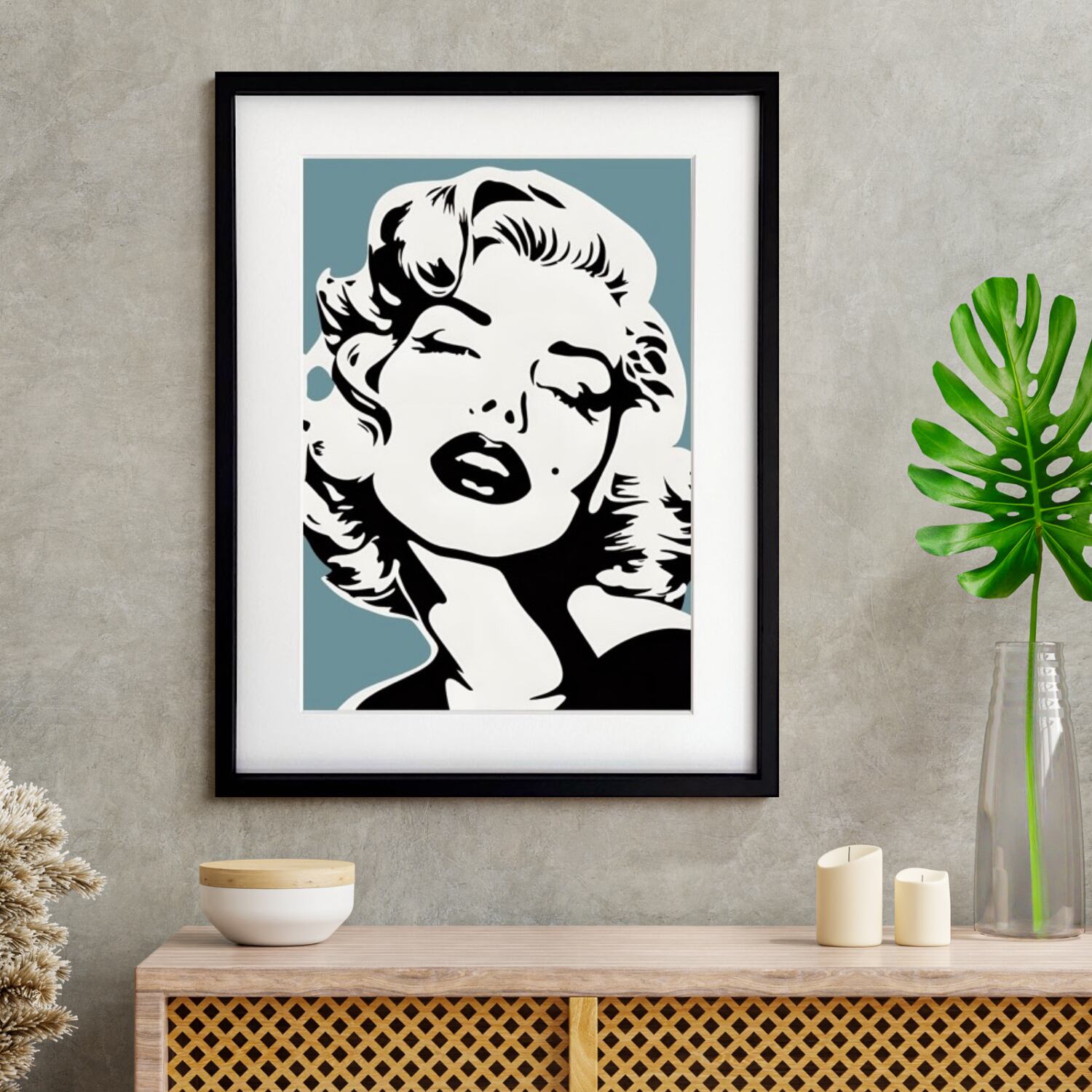 Monroe Love|ブルーグレーが映えるモダンポップアートポスター|上品で洗練された空間を彩るおしゃれインテリアA2ポスター