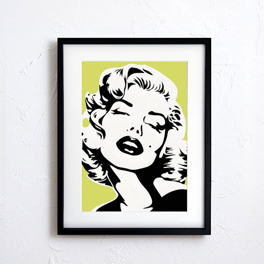 『Monroe Love ? Lime Background』は、時代を超える美と大胆な色彩のコントラストが魅力のポップアート。