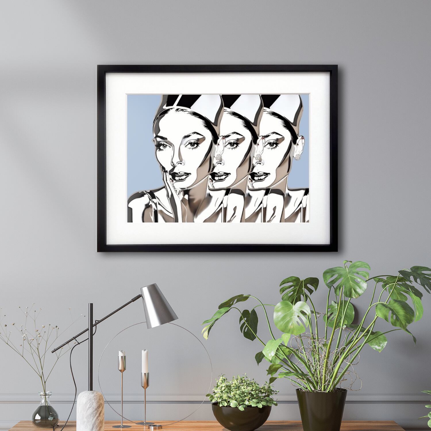 時代を超えて語り継がれるエレガンスを、未来的なメタリックスタイルで再構築したモダンアートポスター。