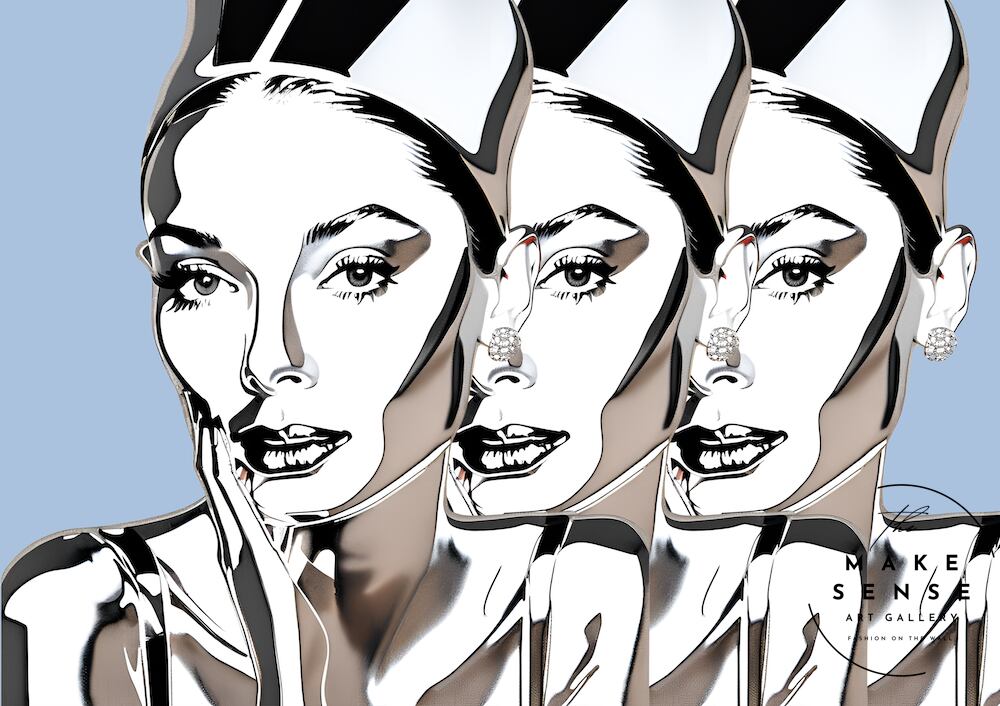 オードリー アート, Iron Woman, メタリックアート, モダンアートポスター, Make Sense Art, 現代アート, 女性アート, 北欧モダン, モードインテリア, メタルデザイン, クールポスター, 美しい女性アート, ホテルライク, 高級インテリア, ギャラリーアート, ジークレー印刷, メイクセンスアート, おしゃれ壁掛け