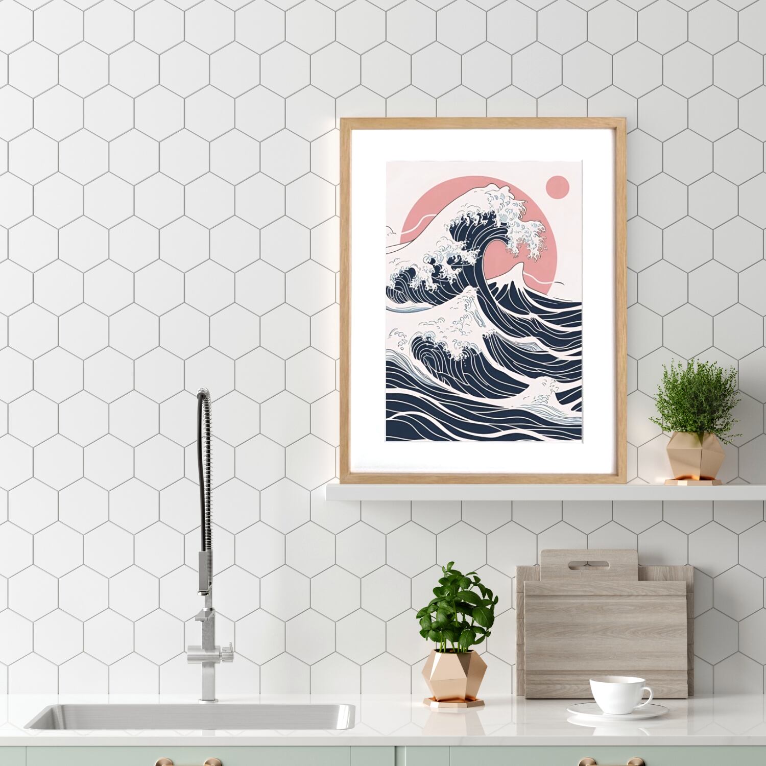 The Great Wave Rebirth|静と動が織りなすモダン波アート|日本美と北欧デザインが融合する上質インテリアポスターA4ポスター