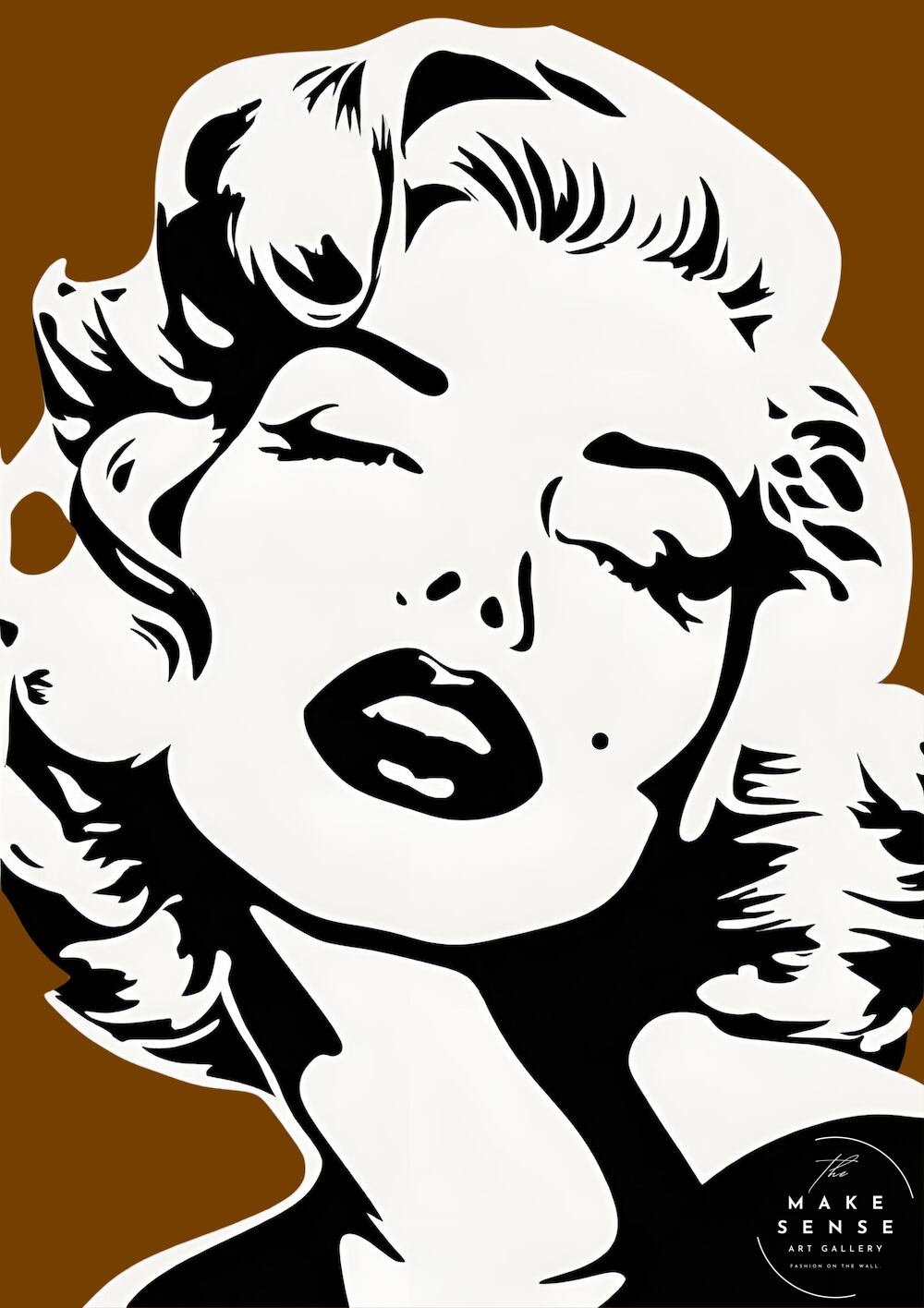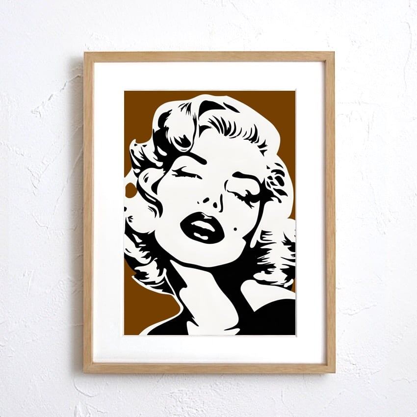 「Monroe Love (Brown)」は、クラシックアイコンの美しさをモダンな視点で再構築したポップアート。強いコントラストと背景のグリーンが空間に華やかさとエネルギーを添え、どんなインテリアも一瞬でスタイリッシュに演出します。