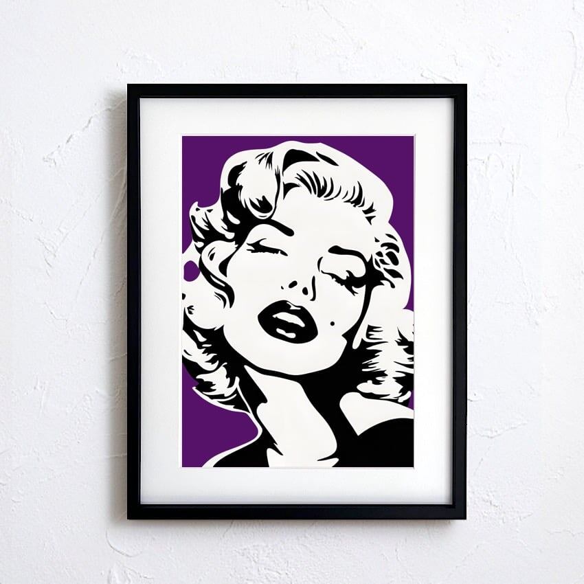 「Monroe Love (Purple)」は、ポップアートの象徴的存在をモノクロームのコントラストで描き出し、背景には深いパープルを組み合わせたインパクト抜群のアートポスターです。洗練されたタッチとエッジィな表現が、クラシックなアイコンを現代的に再解釈し、インテリアに力強い存在感をプラスします。