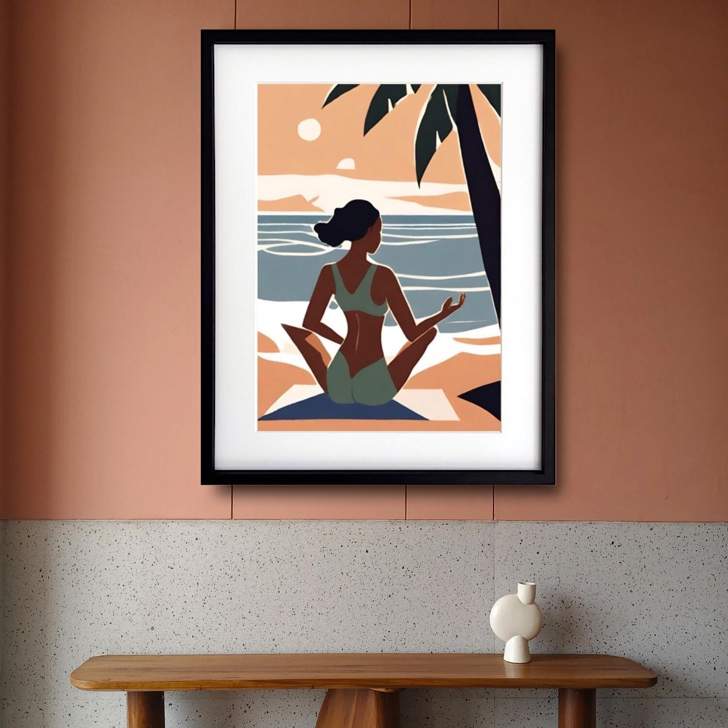 Serenity Flow|海辺の静寂を描く癒しのヨガアート|自然と心が調和するリゾートモダンポスター Make SenseA2ポスター