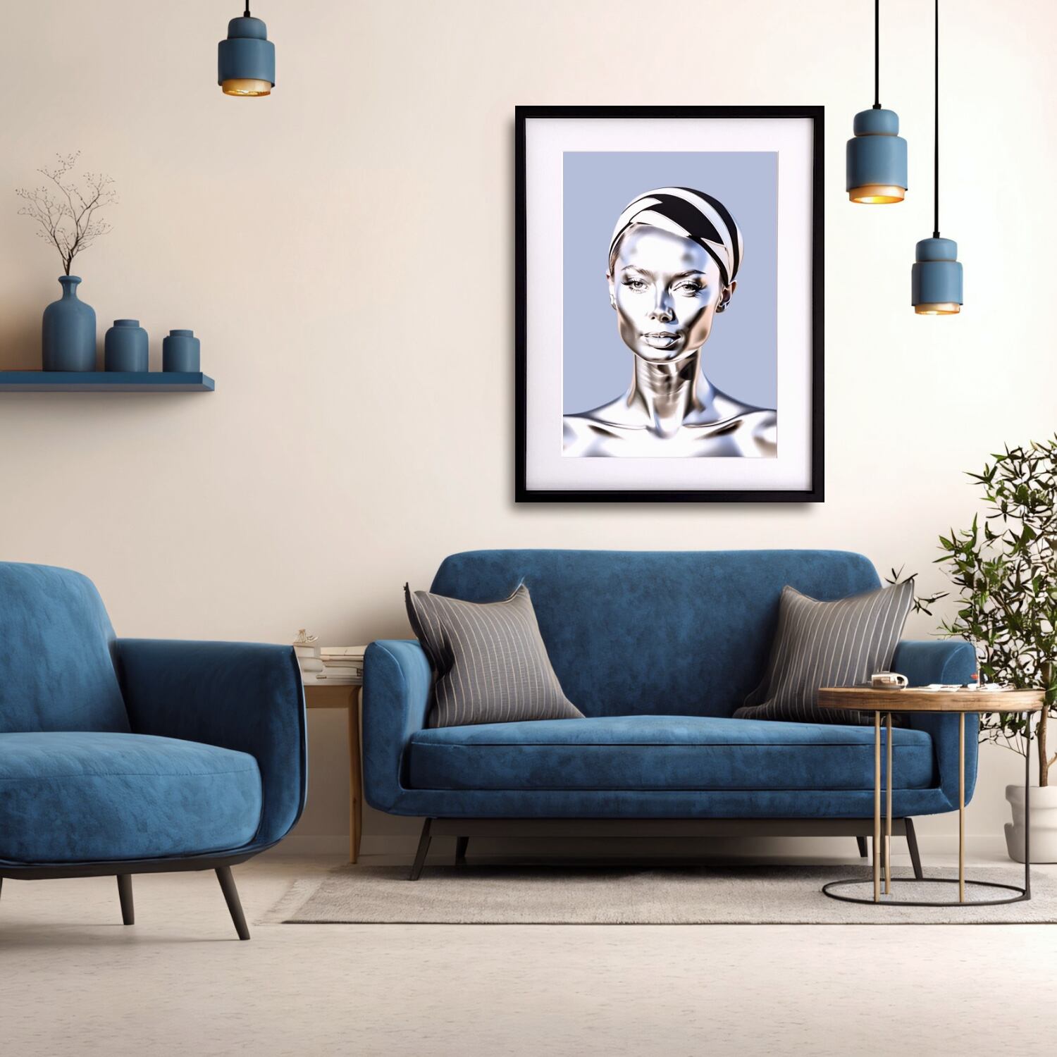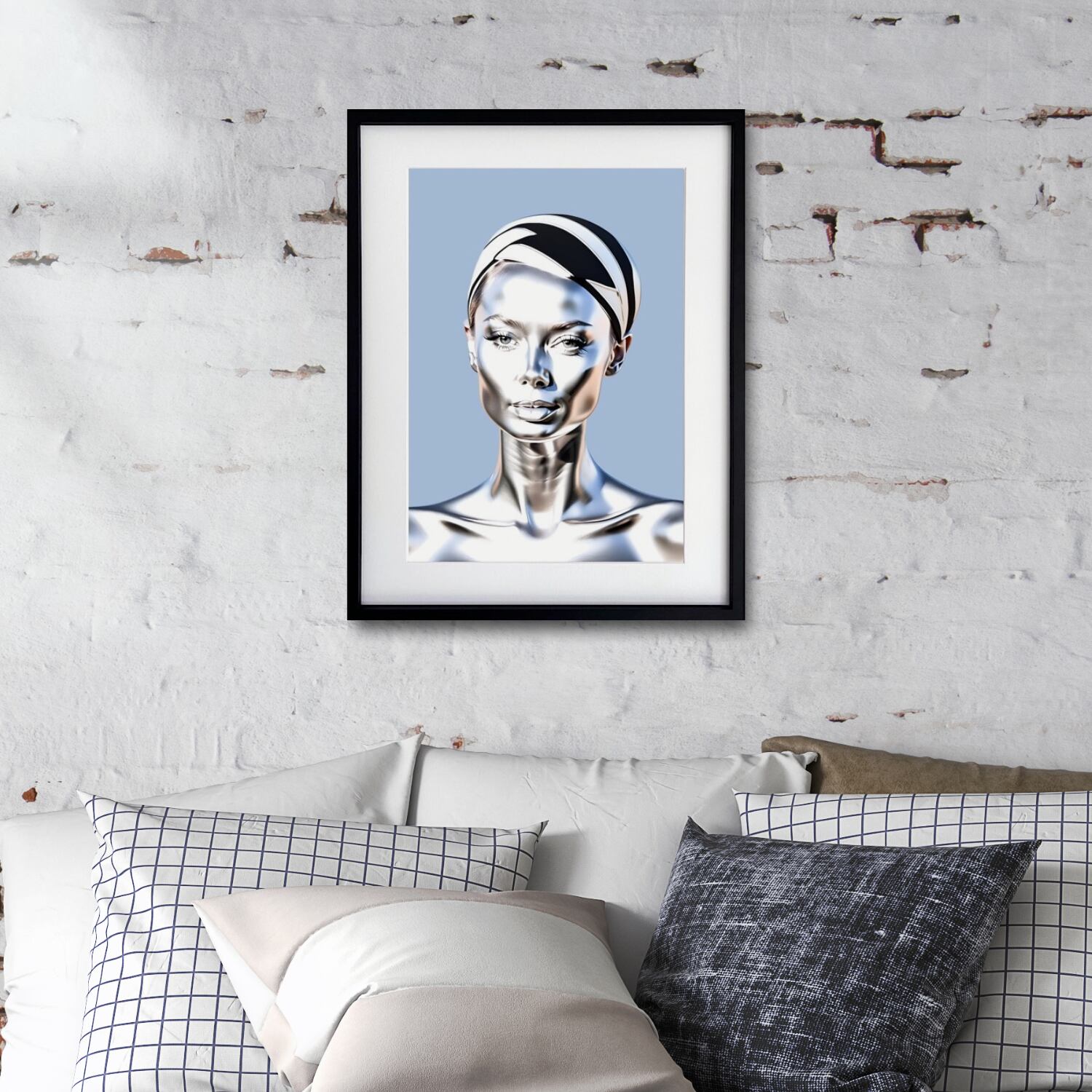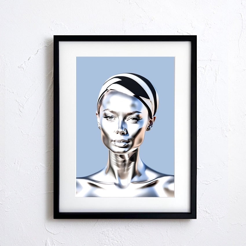 Iron Woman, Make Sense, 現代アート, アートポスター, モードアート, シルバーアート, メイクセンス, ジークレー印刷, 高級アート, モノトーンポスター, ブルーアート, ファッションアート, 北欧インテリア, ホテルライク, 女性アート, 壁掛けポスター, モダンインテリア, シックデザイン, おしゃれポスター