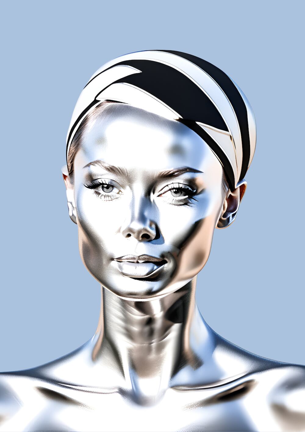 Iron Woman Audrey ⅵ - blue|静寂と強さを纏う女性像|シルバーとブルーが響き合うMake SenseのモードアートA3ポスター