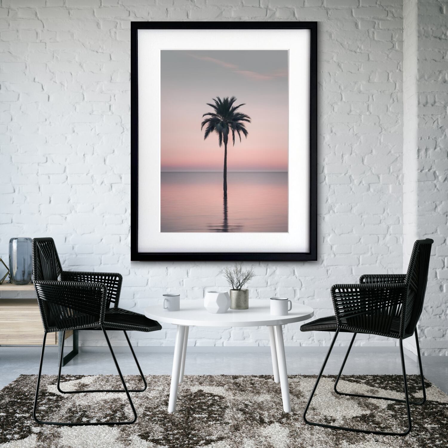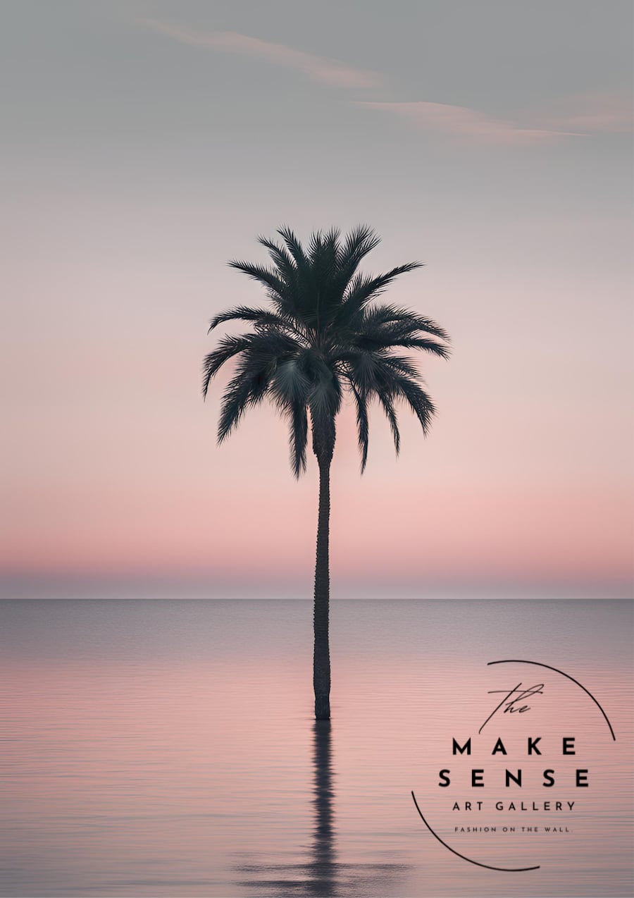 静かな海に佇むパームツリー。もの哀しさと神秘性、非現実性を感じるコラージュアートです。どんなインテリアにも相性が良くグッとセンスある部屋に変わります。