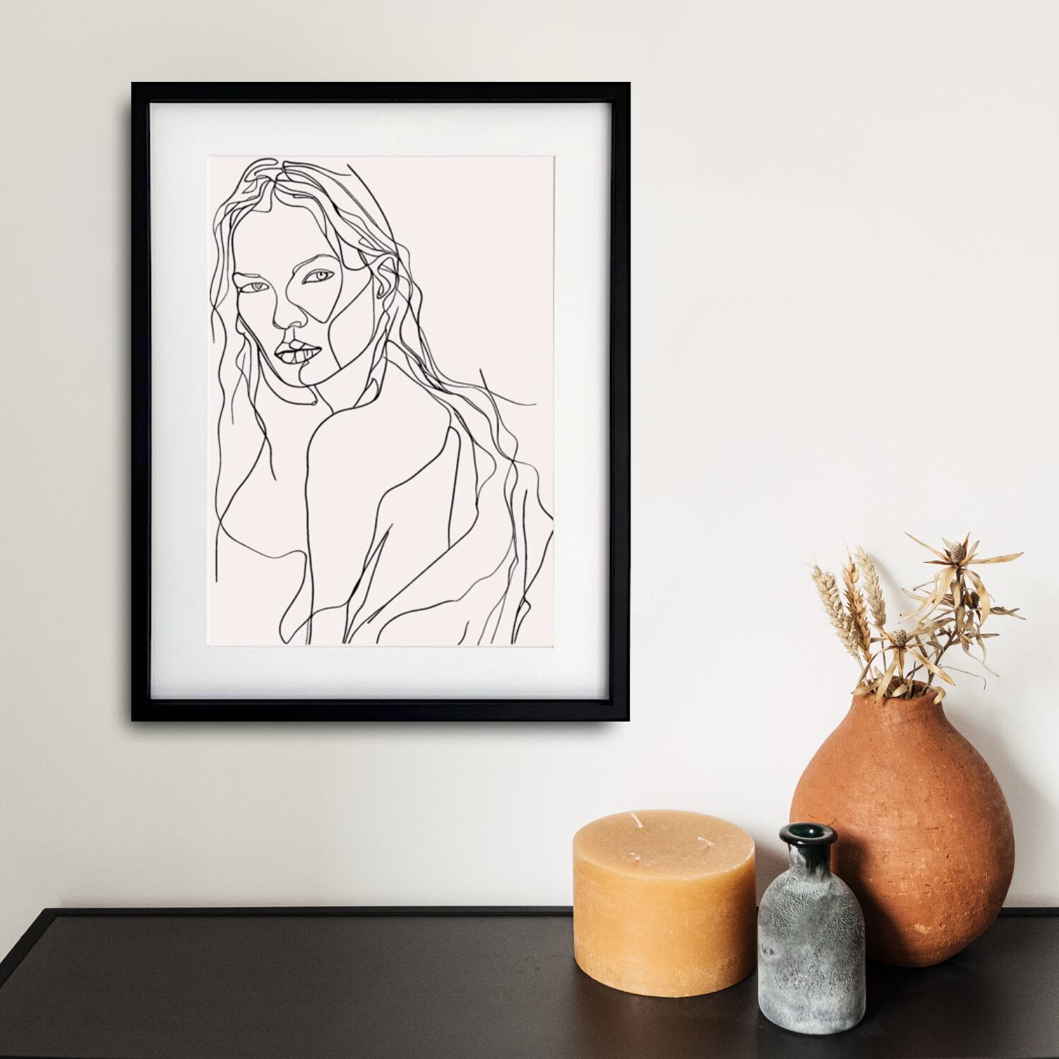LOOK|北欧ミニマルな女性ラインアートポスター|余白の美しさが際立つシンプルで上質なモダンインテリアA2ポスター