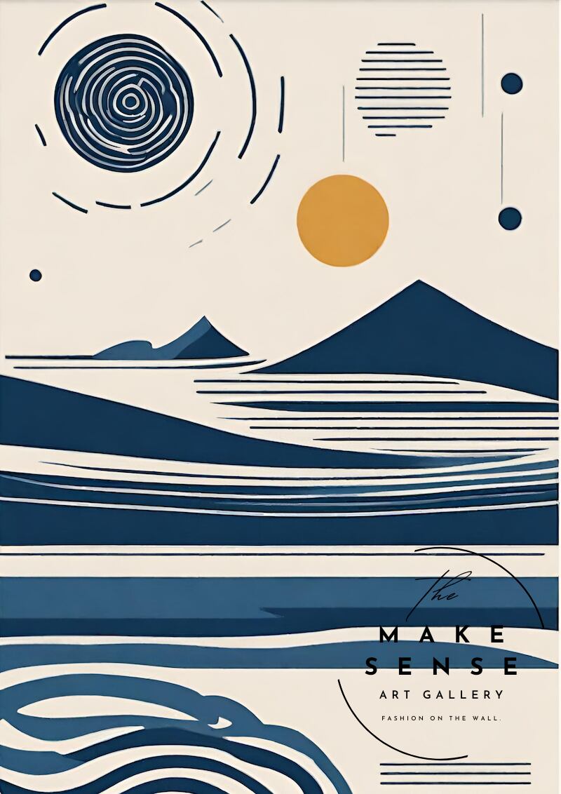 蒼海と黄金の太陽|北欧モダン波アートポスター|和モダンインテリア壁掛け|抽象海景画ミニマルデザイン|リビング寝室玄関におしゃれな壁飾り|ギフトにも最適|高品質印刷|送料無料|A2ポスター