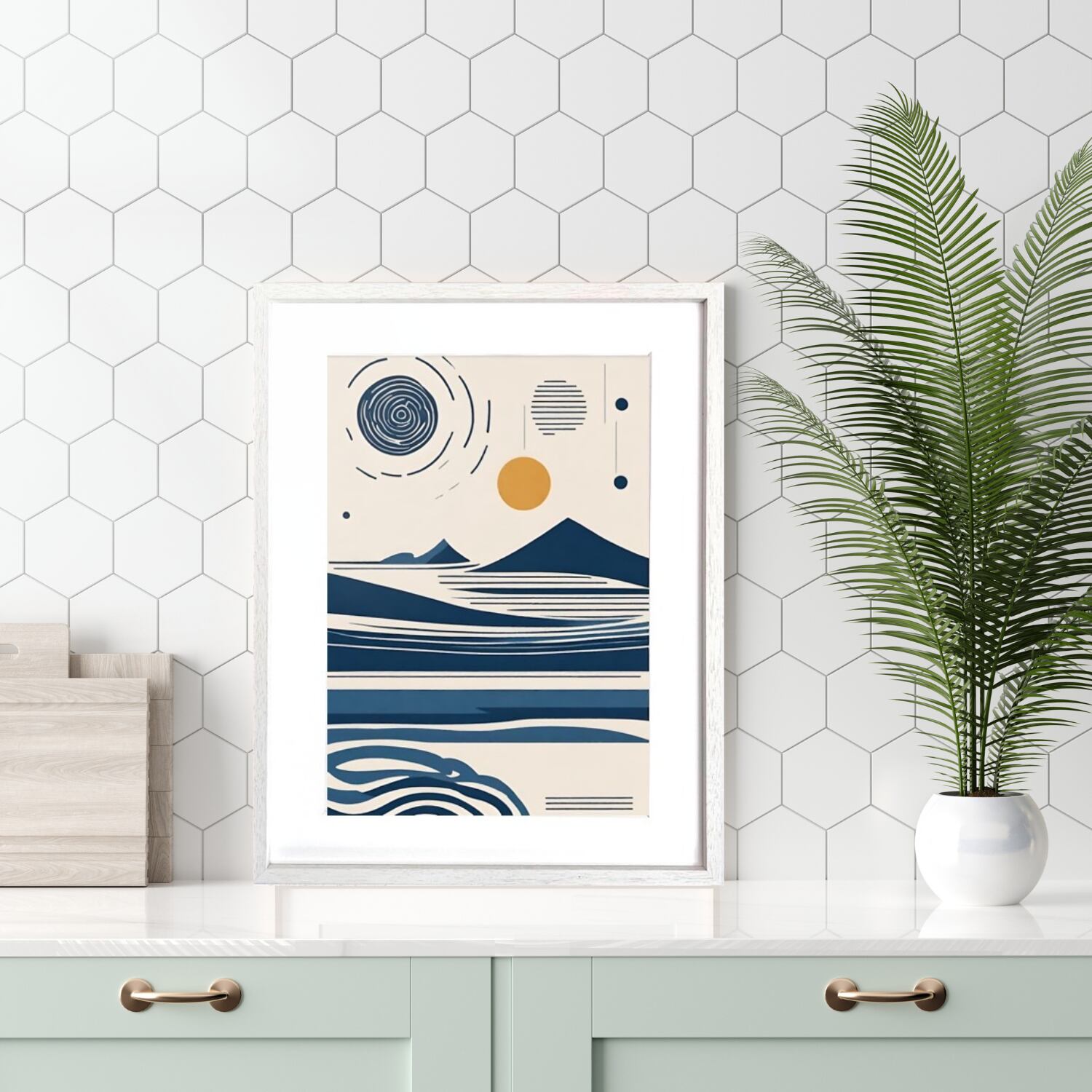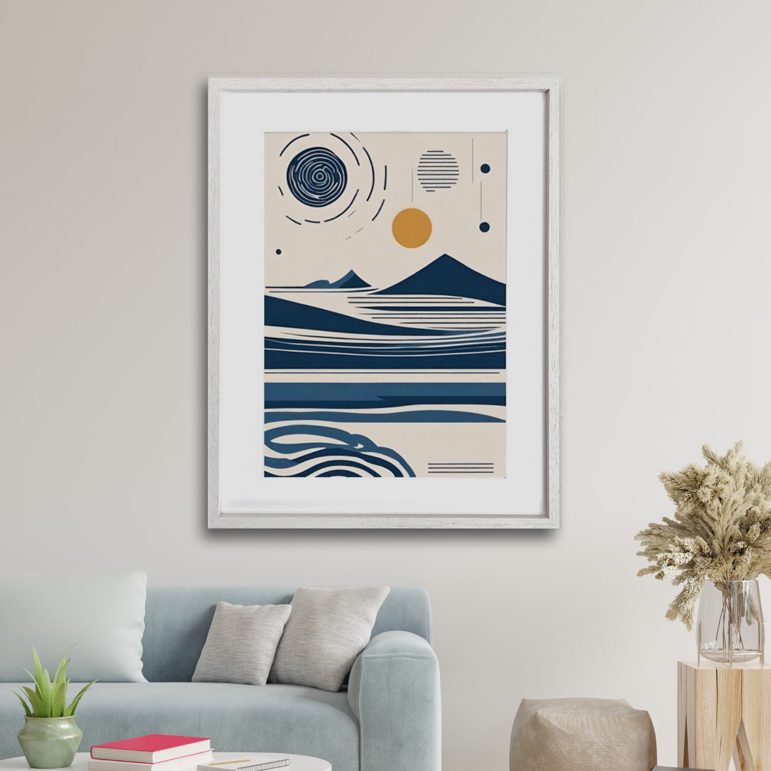 June|幾何学構成で描くモダンオーシャンアートポスター|洗練されたブルートーンが映える上品インテリアA3ポスター