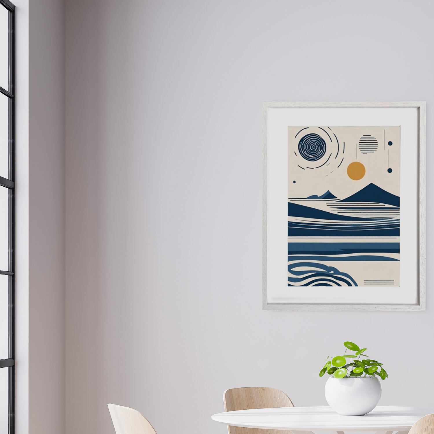 June|幾何学構成で描くモダンオーシャンアートポスター|洗練されたブルートーンが映える上品インテリアA2ポスター