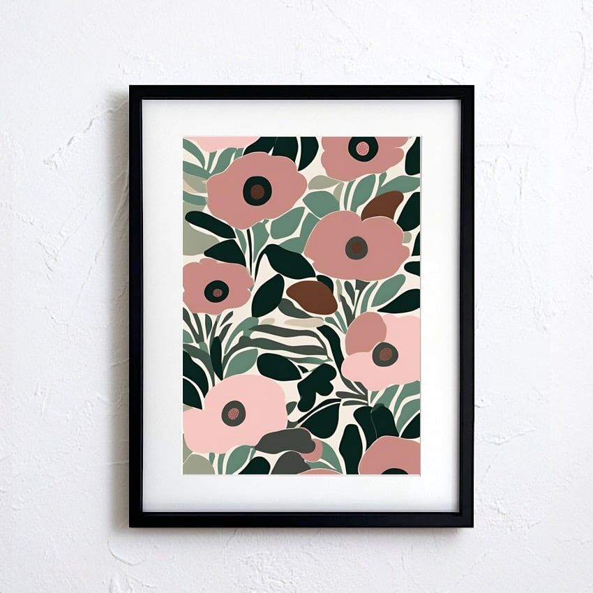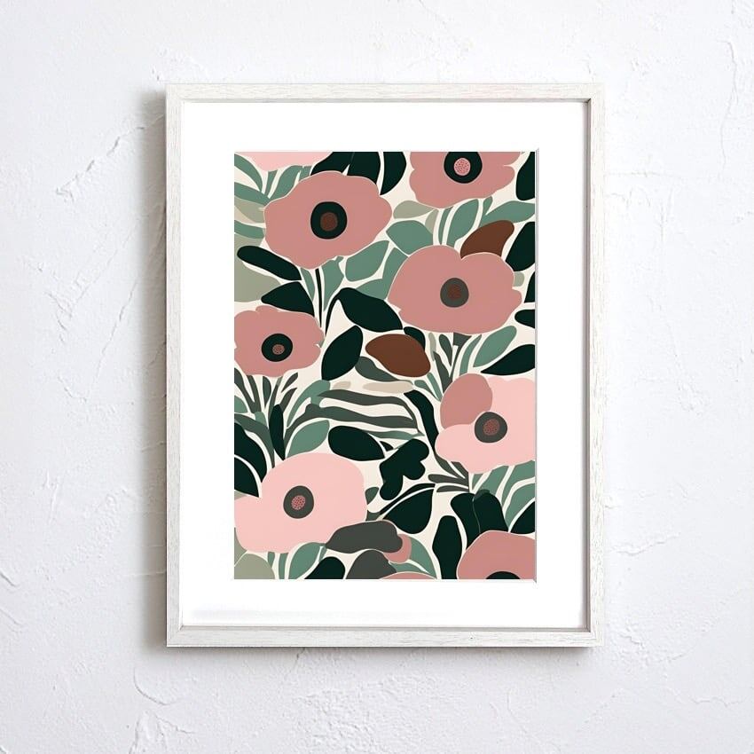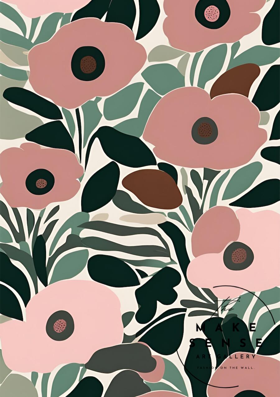 優雅に咲くポピー達をマリメッコ風に表現したおしゃれなボタニカルポスター。北欧、ボタニカル、ミニマルスタイルなインテリアに相性良く、センスある部屋に変わります。