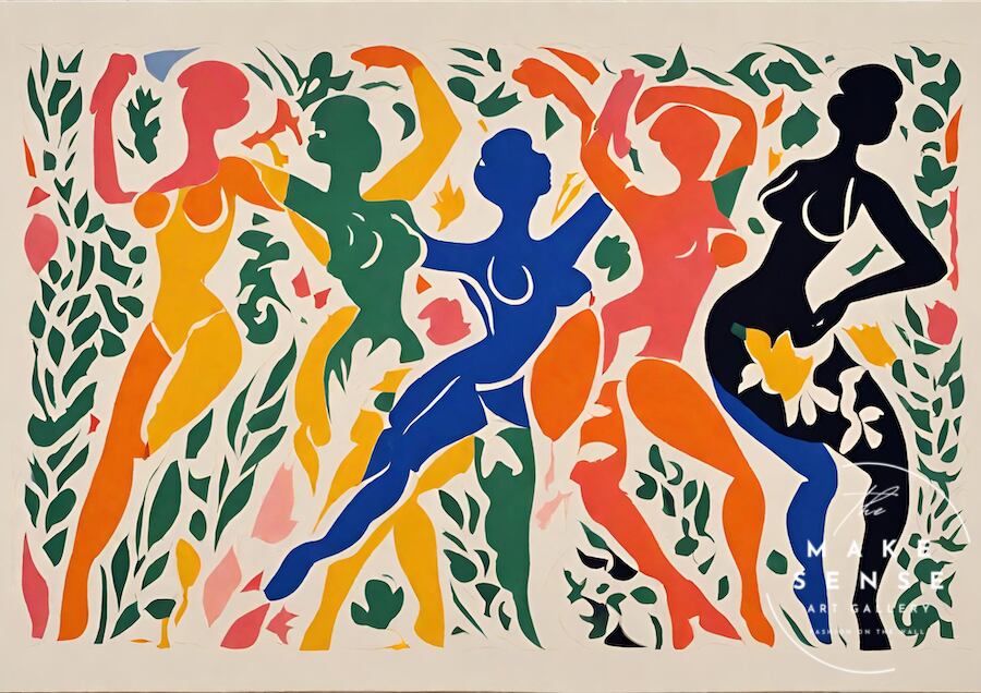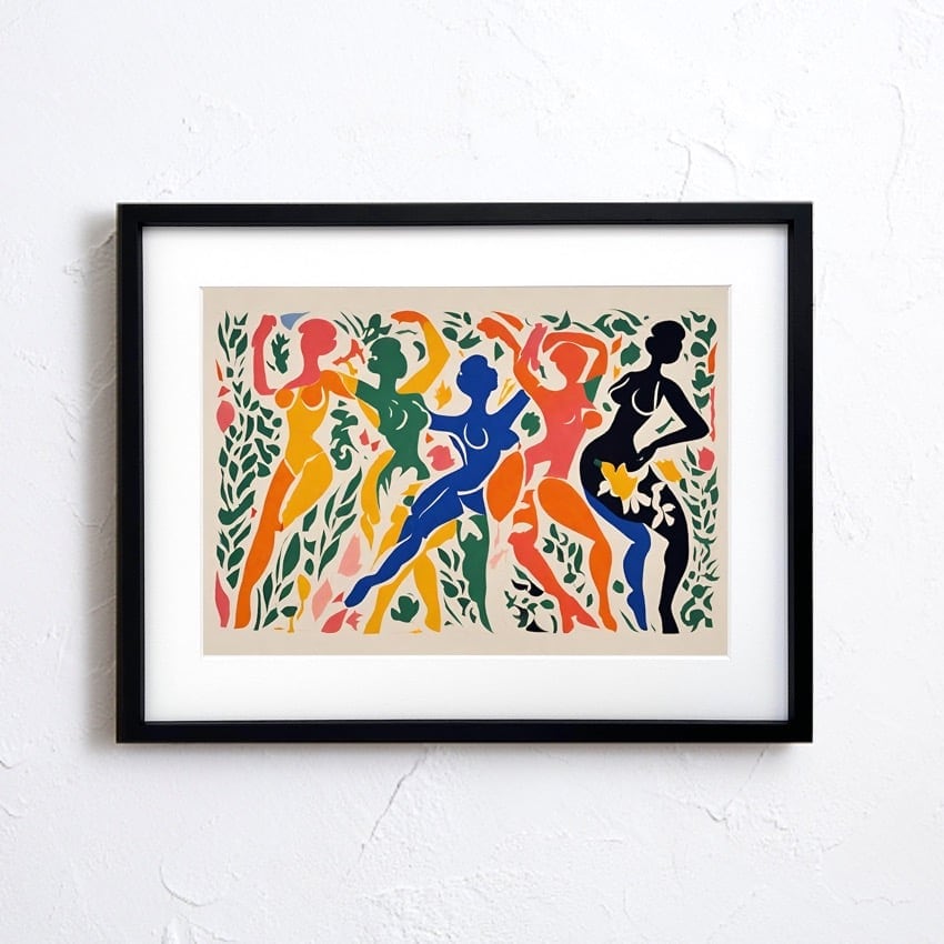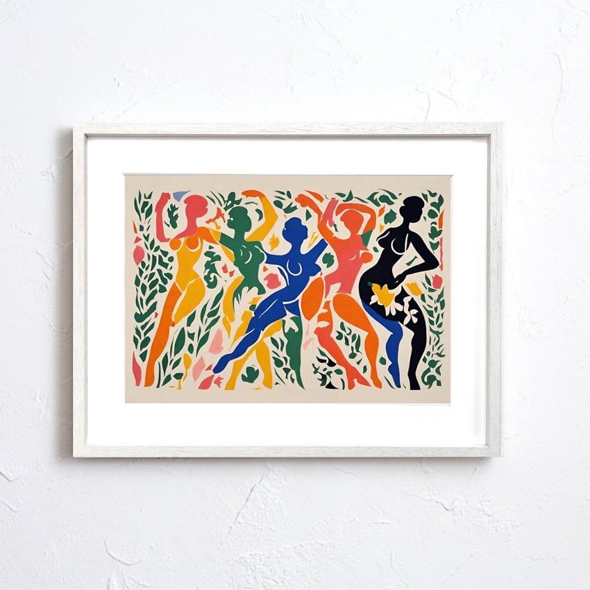 切り絵のように抽象的に人々がカーニバルで踊りを楽しむ様子をカラフルにアート表現。モダンなインテリアに相性良く、センスある現代モダンな部屋へと変わります。