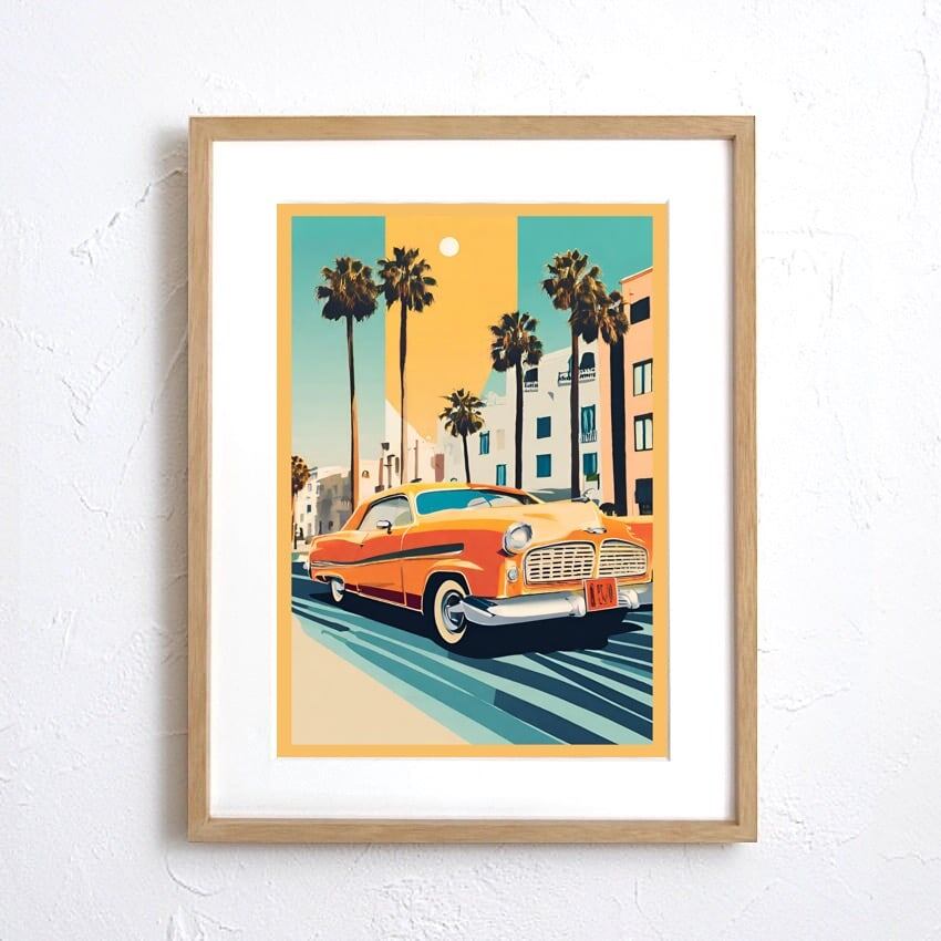 「Cali」は、西海岸の心地よい空気とヴィンテージ感を同時に楽しめるアートポスターです。