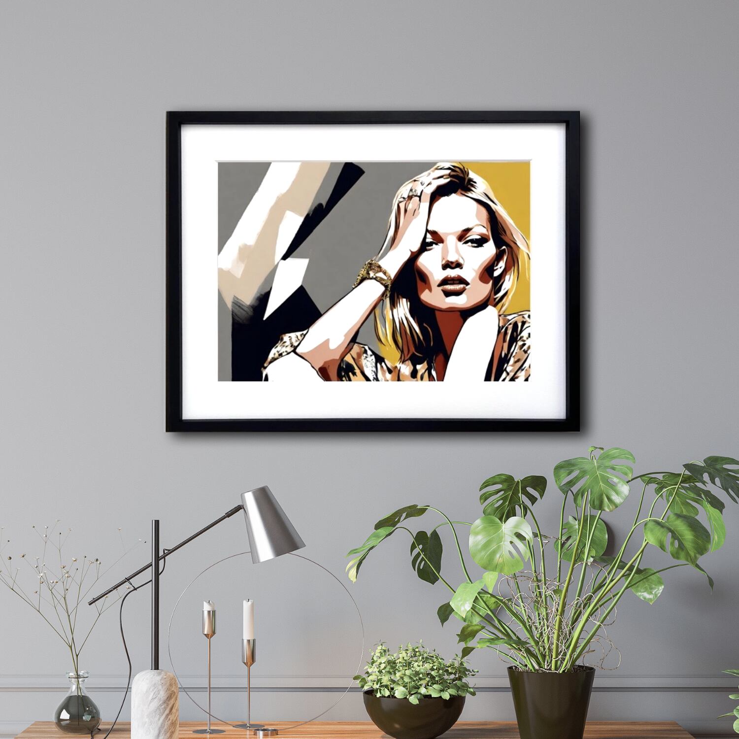 Legend Kate Moss|ファッションアイコンの魅力を映すポートレートアートポスター|洗練と存在感が空間をドラマティックに彩るA4ポスター