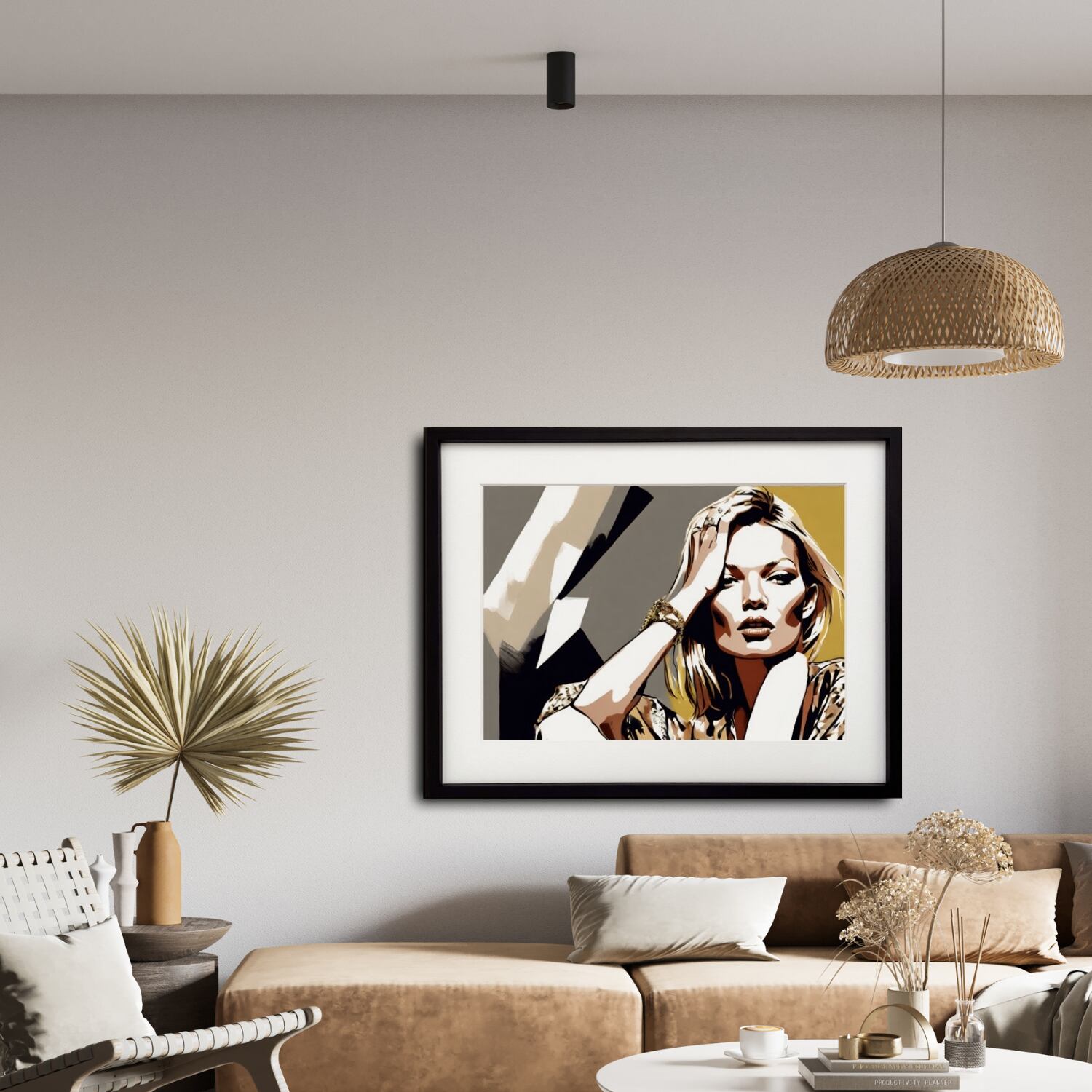 ファッション界の象徴であるケイト・モスに敬意を評し、シンプルかつラグジュアリーな雰囲気でアート表現したポスターです。洗練された表情とモノトーンの美しさが空間に映え、モダンインテリア・ラグジュアリールーム・サロンやショップの壁面演出にもぴったり。