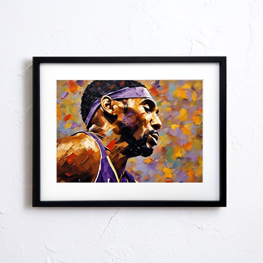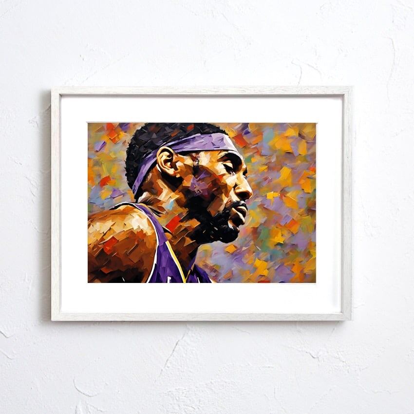 バスケットボール界の伝説を日常に感じられるアートとして、自宅やオフィスに飾れば空間に力強さとインスピレーションを与えます。