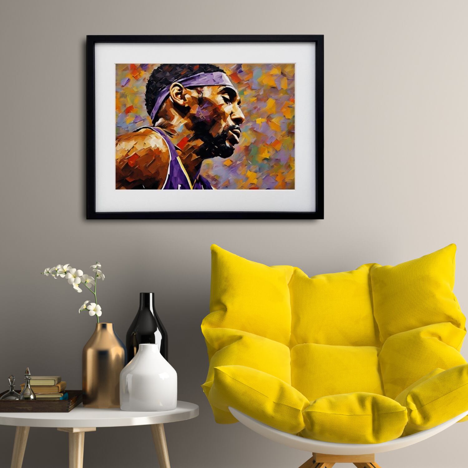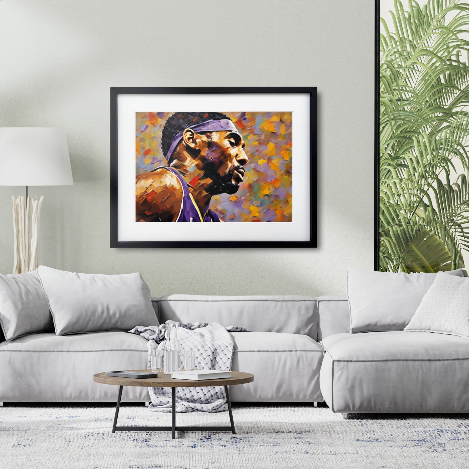 バスケットボール界の伝説を日常に感じられるアートとして、自宅やオフィスに飾れば空間に力強さとインスピレーションを与えます。
