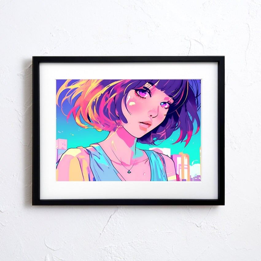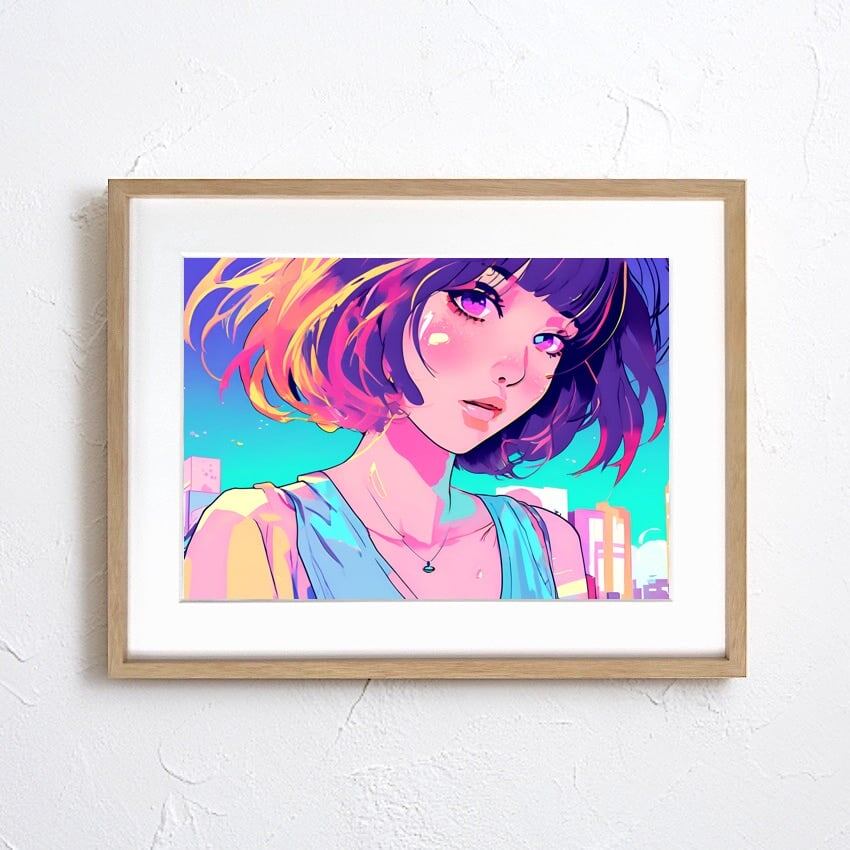 Bob Girl Ⅱ|レトロポップなボブヘア女性アートポスター|淡いパステルが描くシティポップな大人かわいいインテリアA3ポスター