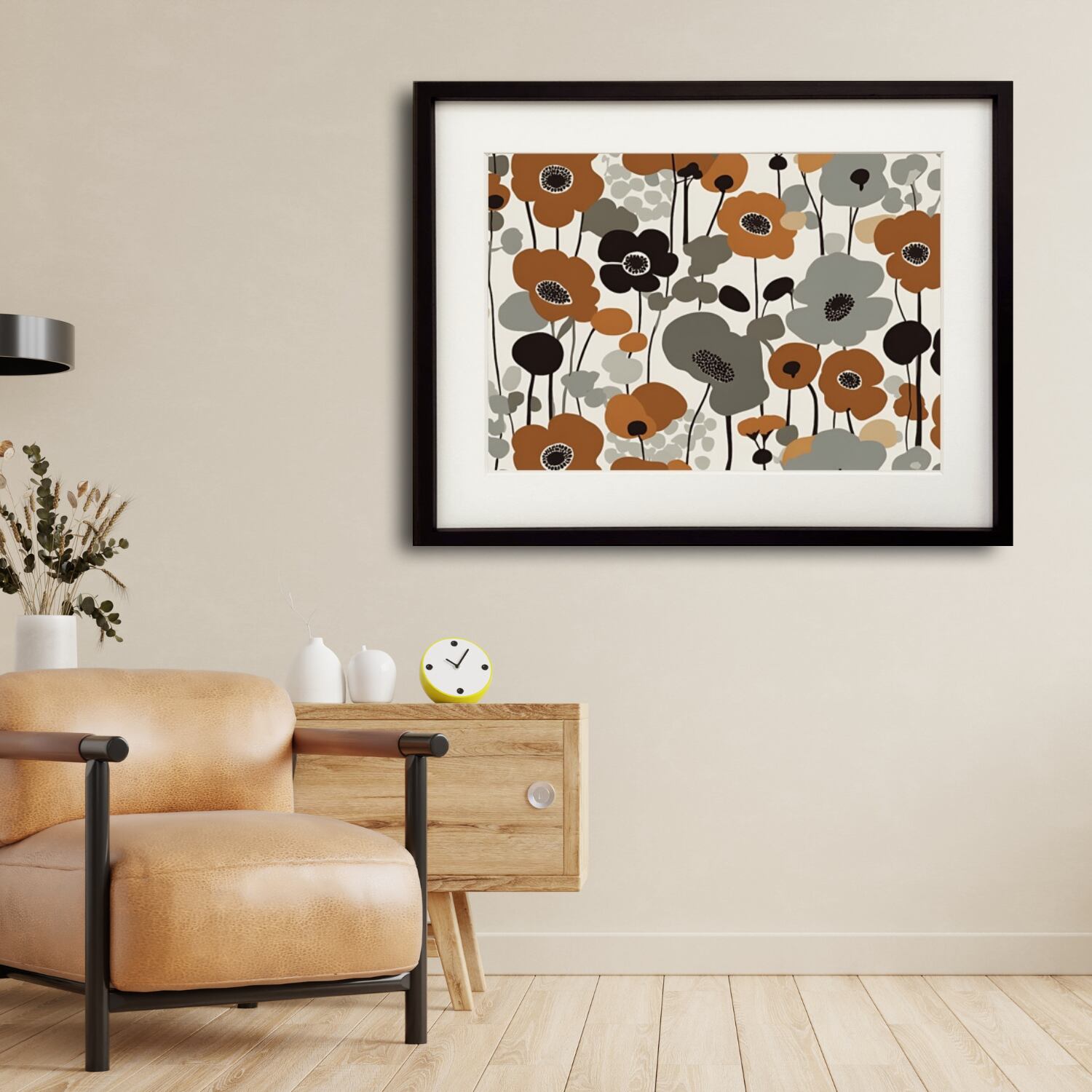 優雅に咲くポピー達をマリメッコ風に。くすみ色で表現された少し落ち着いたおしゃれなボタニカルポスター。北欧、ボタニカル、ミニマルスタイルなインテリアに相性良く、センスある部屋に変わります。