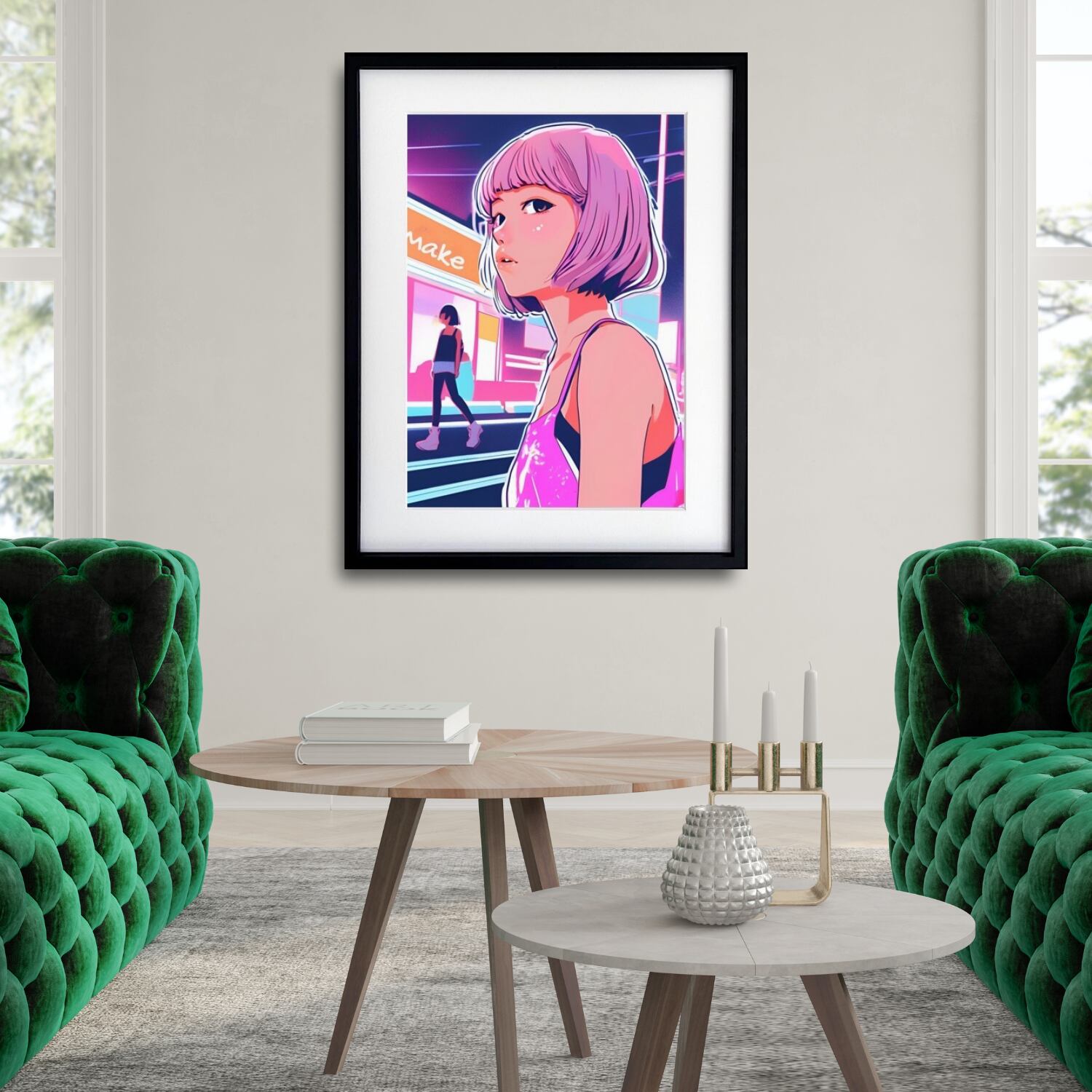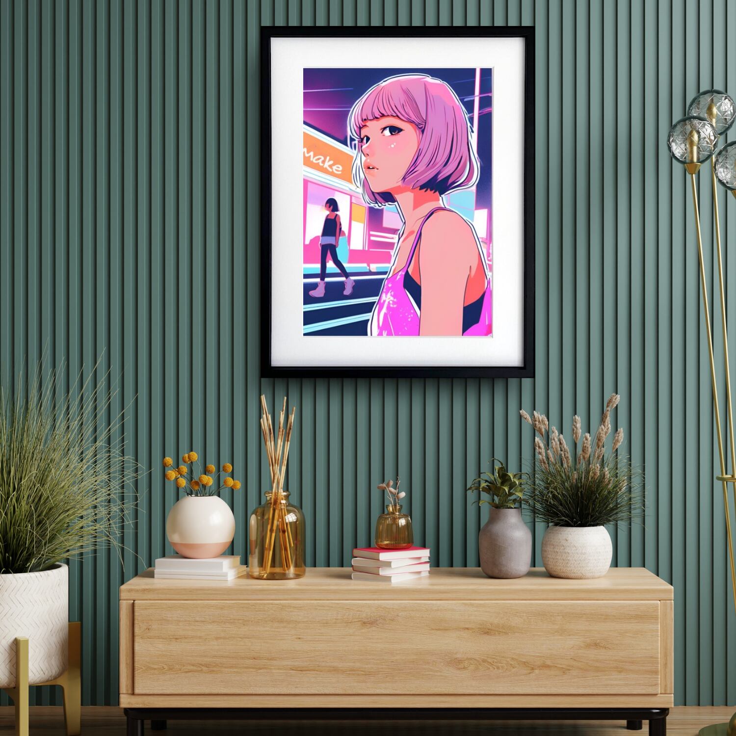 Bob Girl VIII|ピンクヘアが映えるシティポップアートポスター|ノスタルジーと洗練が交差する大人のレトロモダンインテリアA4ポスター