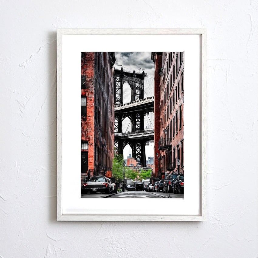 Brooklyn Frame|赤煉瓦と鉄橋が織りなすモノクロフォトアートポスター|静かな存在感で空間を引き締める都会的インテリアA4ポスター
