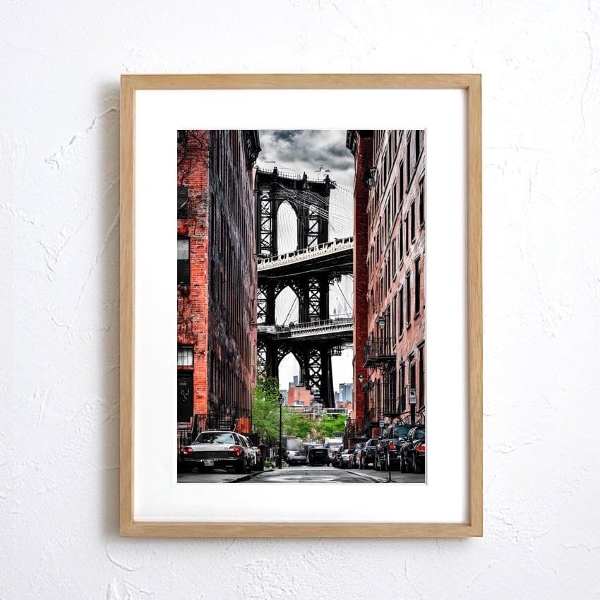 ニューヨーク・ブルックリンの象徴的な街角を切り取った、力強くも繊細なアートポスターです。