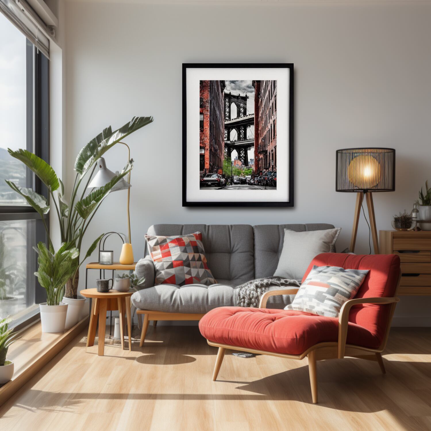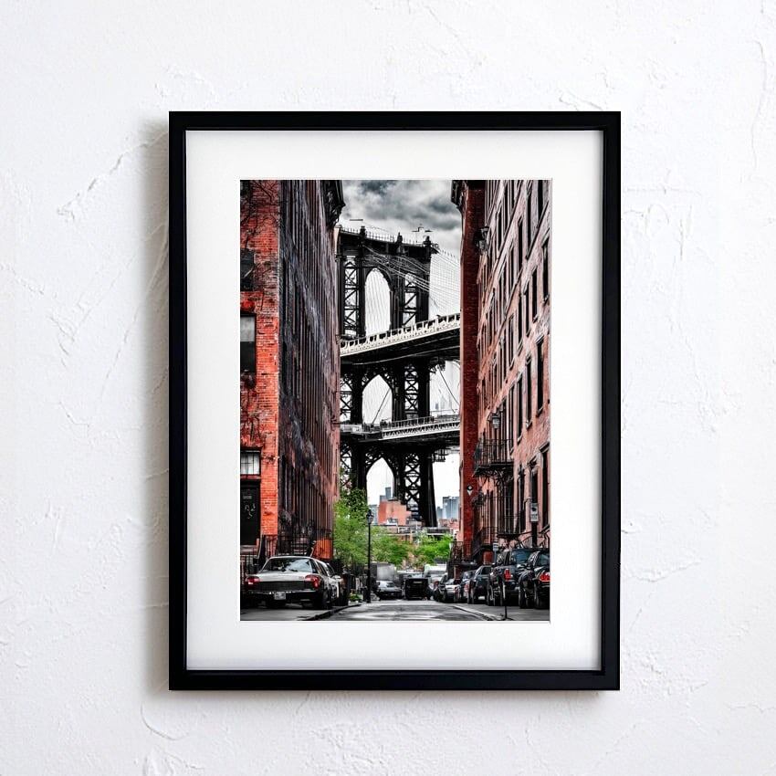 Brooklyn Frame|赤煉瓦と鉄橋が織りなすモノクロフォトアートポスター|静かな存在感で空間を引き締める都会的インテリアA2ポスター