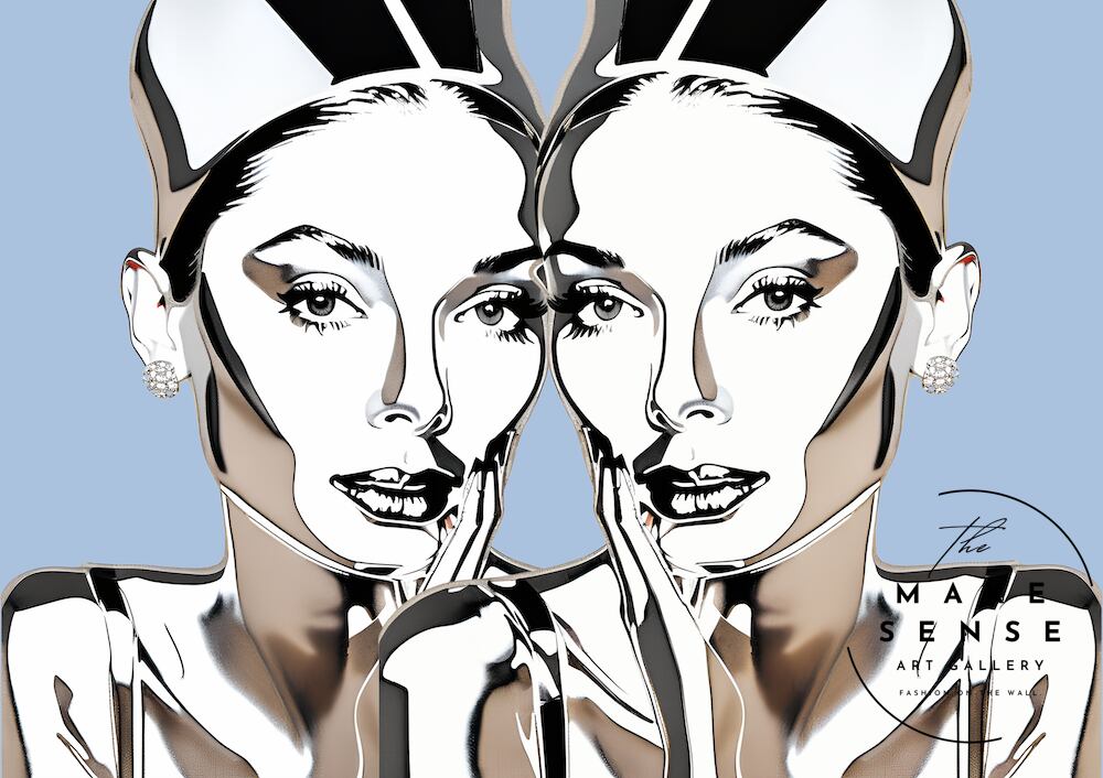 オードリー アート, メタリックアート, モダンポスター, アイアンウーマン, Audrey II, Make Sense Art, 北欧モダン, シルバーアート, クールインテリア, ポップアート, モードデザイン, 現代アートポスター, 高級アートプリント, おしゃれ壁掛け, 女性アート, 未来的デザイン