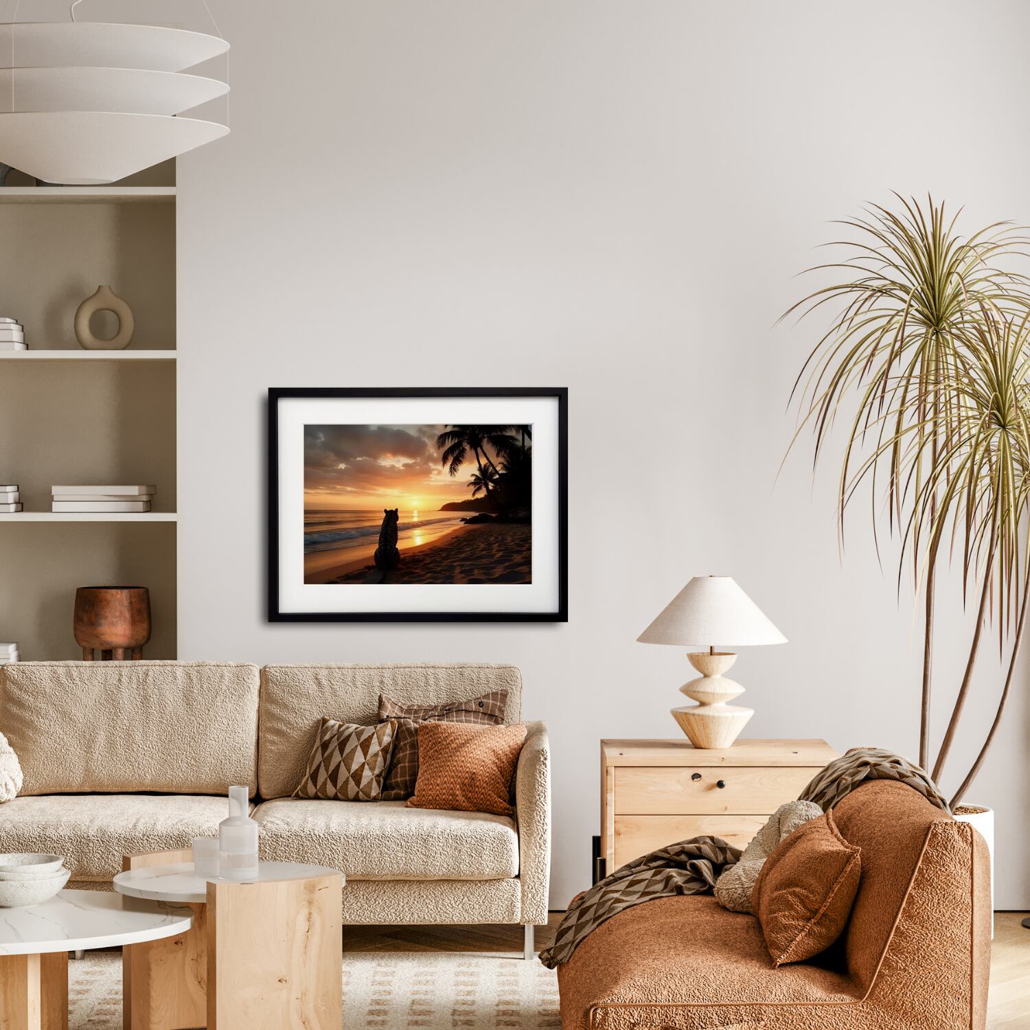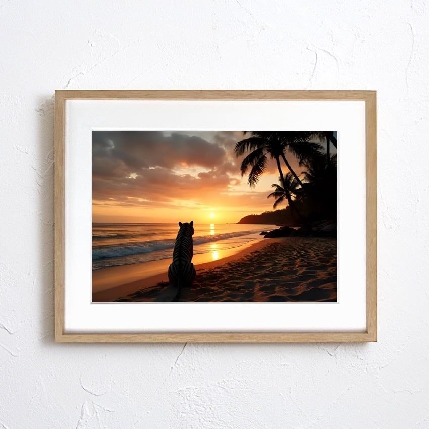 ホワイトタイガー アート, 夕陽 アートポスター, 海のアート, 癒しのインテリア, White Tiger of Memories, Make Sense Art, 北欧モダン, リゾートインテリア, サンセットアート, 動物アート, モダンポスター, 癒しの風景, 浜辺のアート, おしゃれ壁掛け, モダンインテリア, ナチュラルデザイン, 高品質ポスター, ホテルライクインテリア