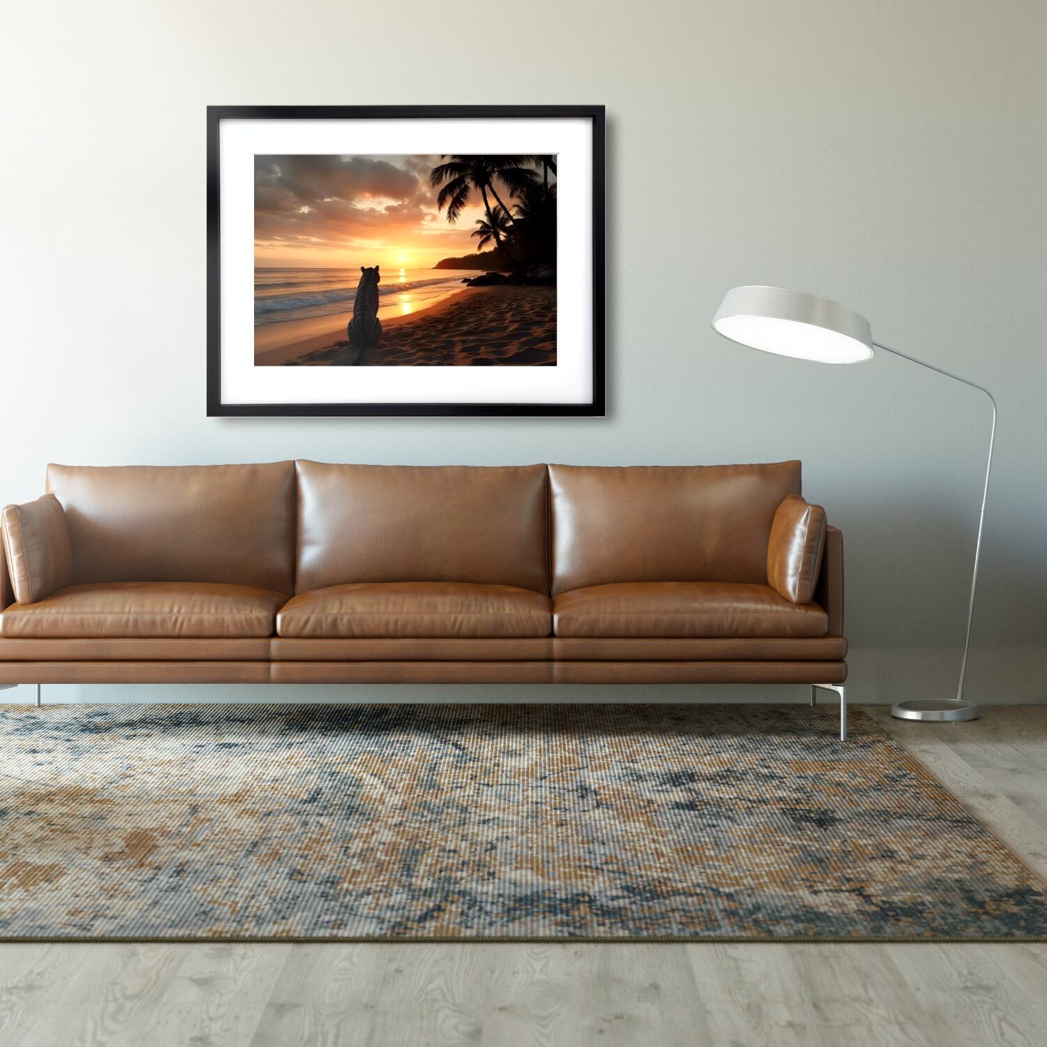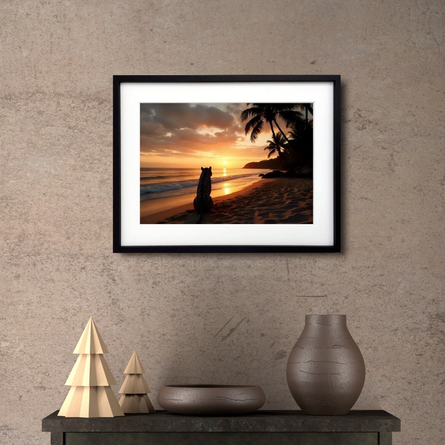 ホワイトタイガー アート, 夕陽 アートポスター, 海のアート, 癒しのインテリア, White Tiger of Memories, Make Sense Art, 北欧モダン, リゾートインテリア, サンセットアート, 動物アート, モダンポスター, 癒しの風景, 浜辺のアート, おしゃれ壁掛け, モダンインテリア, ナチュラルデザイン, 高品質ポスター, ホテルライクインテリア