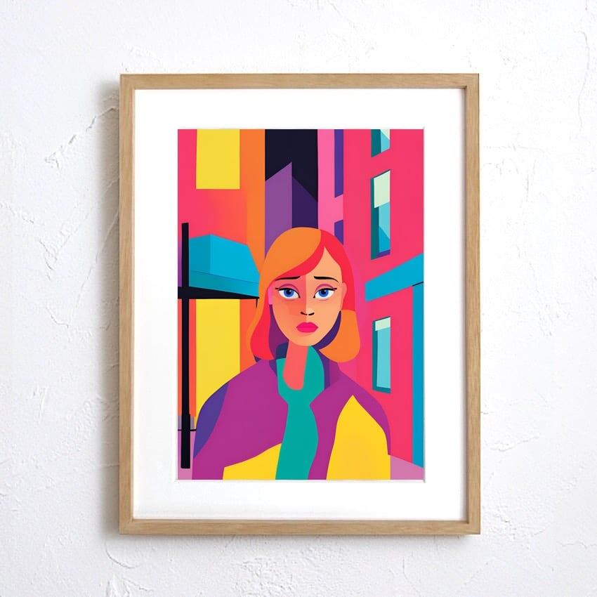 City Melancholy|都会に生きる女性を描いたポップアートポスター|感情と色彩が響くモダンインテリアに最適A2ポスター